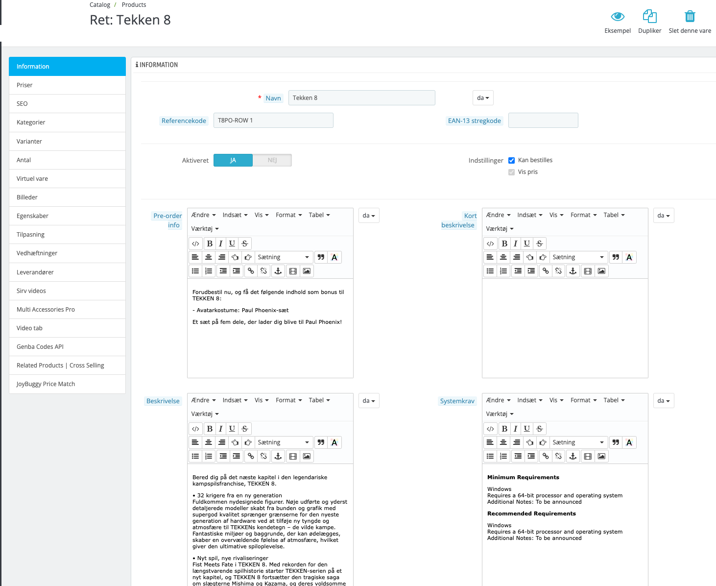 - Shoppen er udviklet i ThirtyBees 1.5, en moderne variant af Prestashop 1.6.