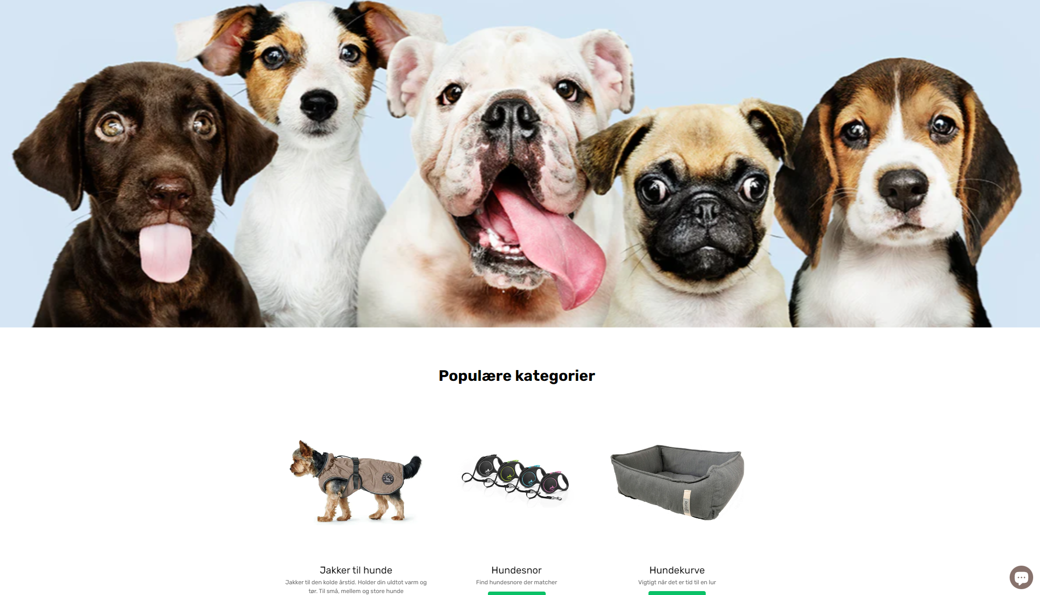 Webshoppen sælger alt slags udstyr til hunde og katte. Produkterne er alt fra halsbånd, snore, hundekurve, legetøj, børster, kradsetrær, hunde- og kattefoder, snacks og meget mere.