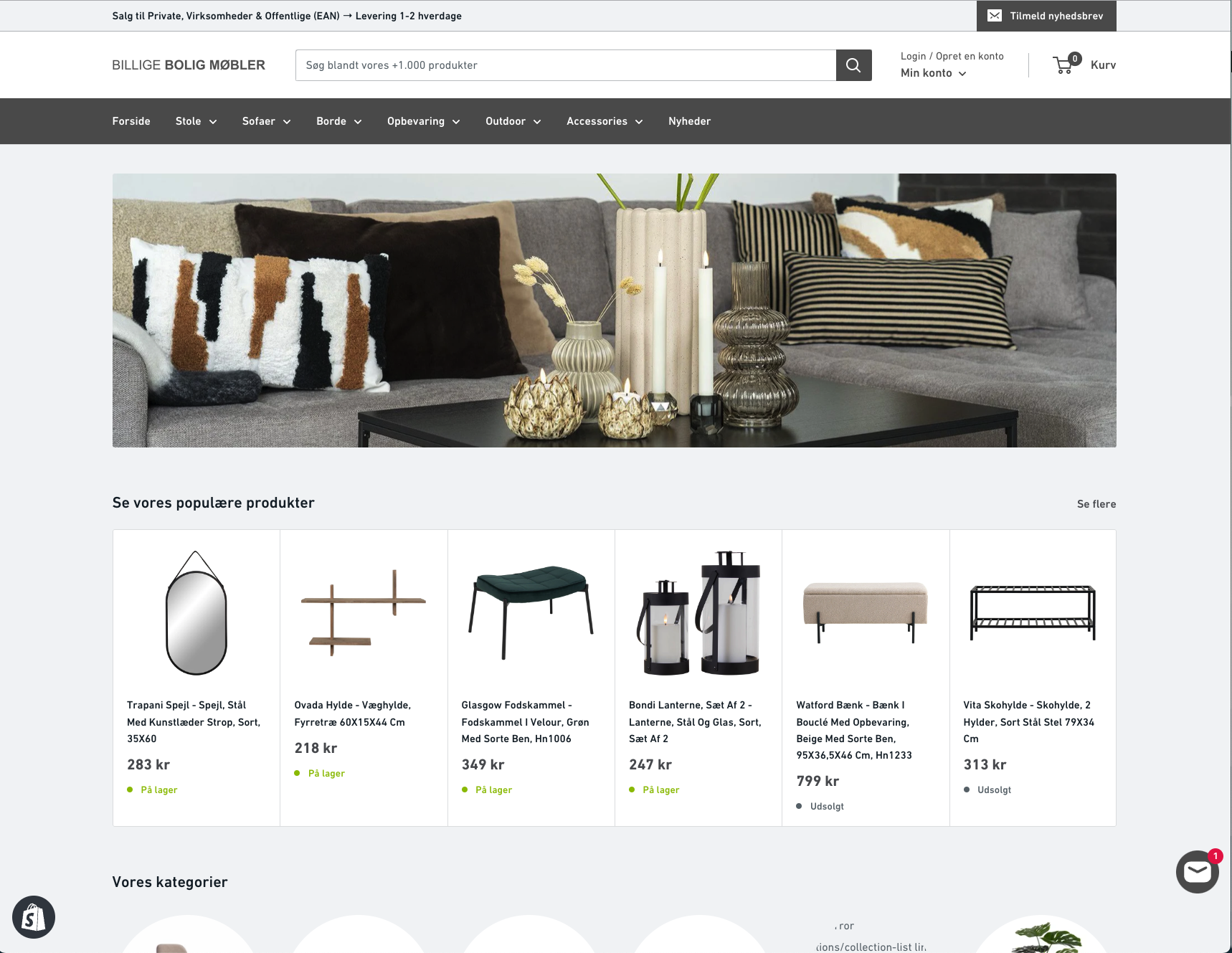 - Betalingsmuligheder (Visa, Mastercard, Apple Pay og Google Pay)
