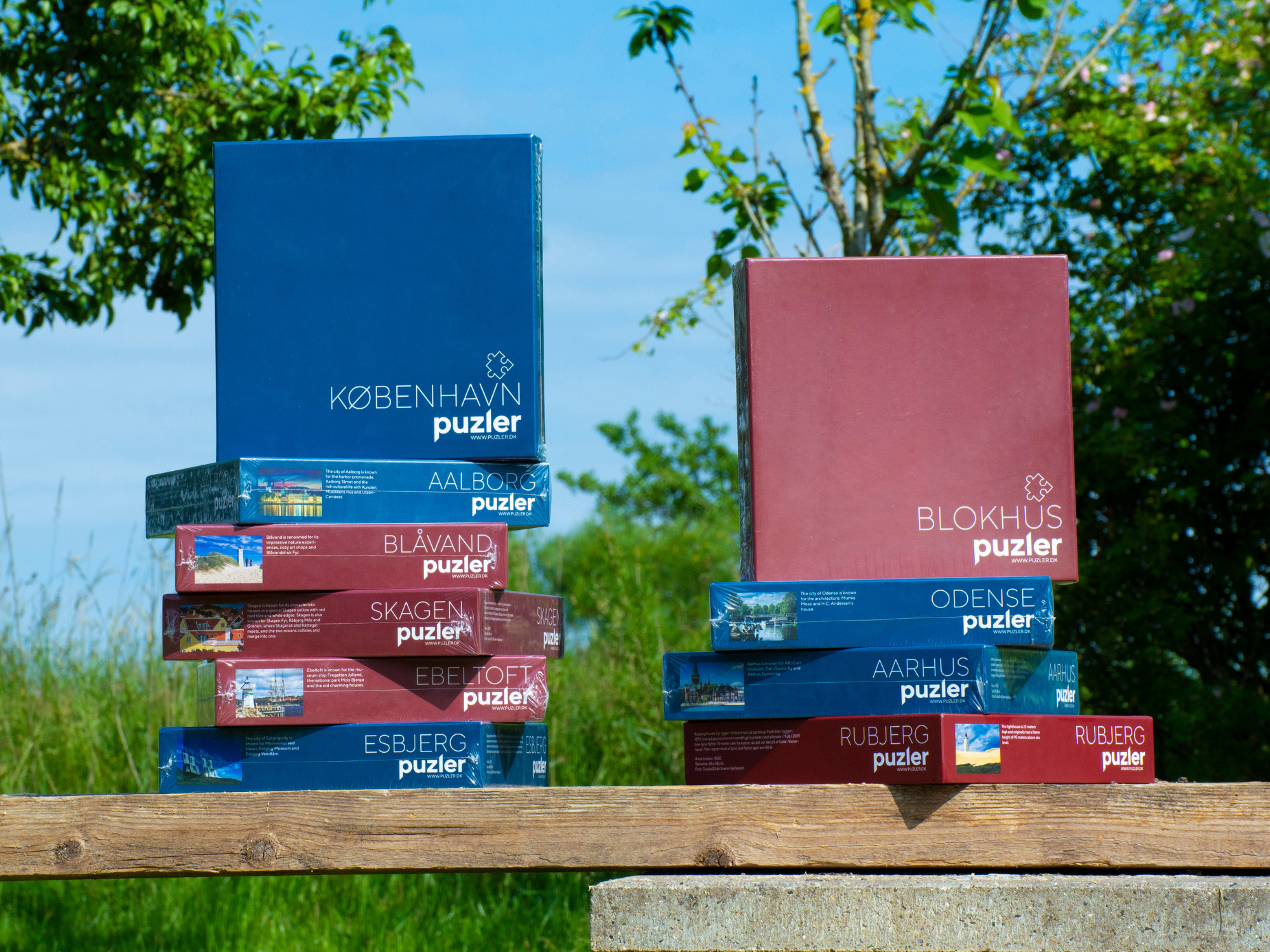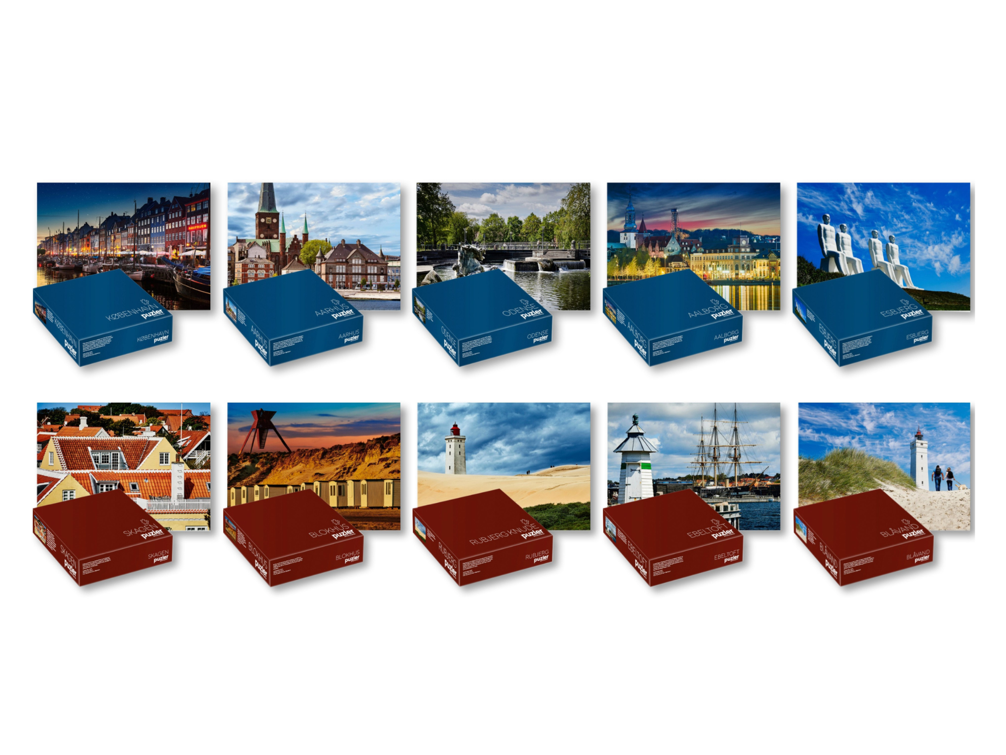 Vi sælger puslespil i vores eget mærke og design. Vores sortiment består af 10 forskellige motiver: