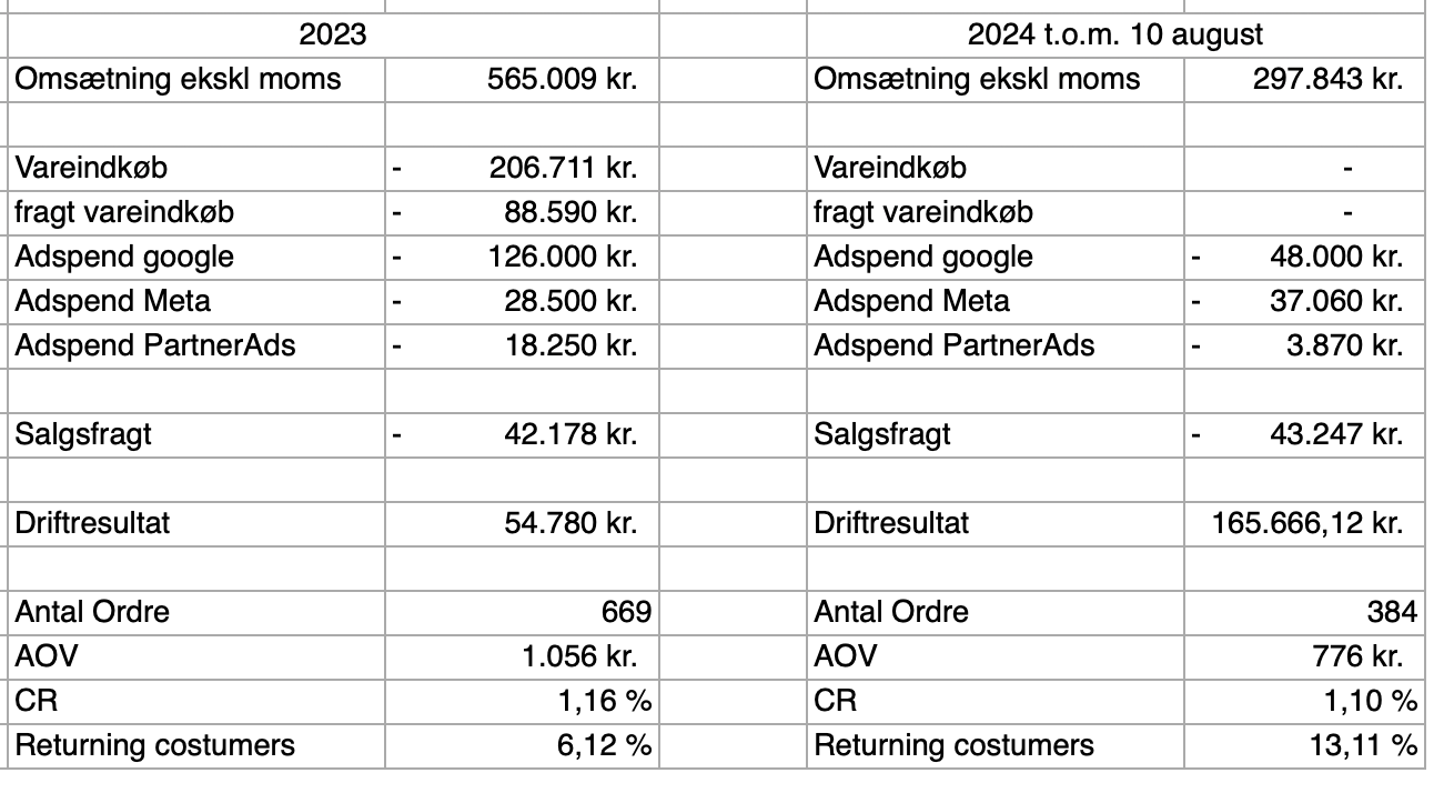 Dette projekt rummer et enormt potentiale. Med dedikation og den rette indsats, herunder nye fragtaftaler og optimering af indkøb (hvor vi kun har investeret 50.000 kr. pr. indkøbsrunde), står det klart, at der er en gylden mulighed for at udvikle en profitabel og skalerbar forretning. Dette er en unik chance for at bygge videre på et fundament, der allerede har vist sin styrke og sit potentiale.