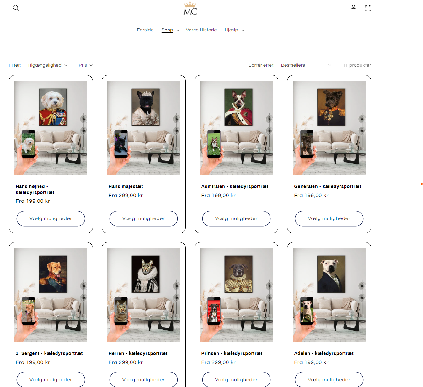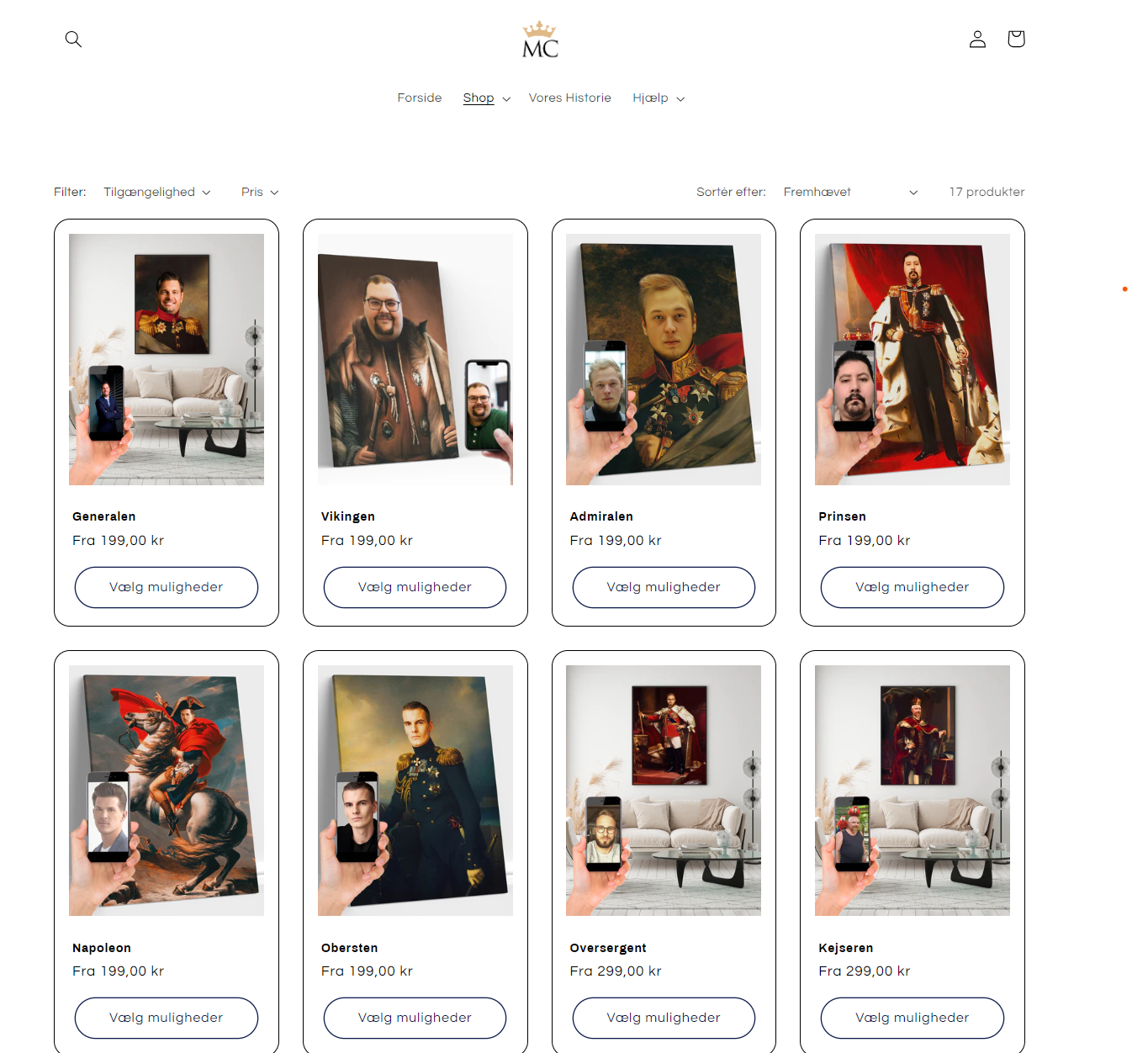 Vi tilbyder en unik oplevelse, hvor vores kunder kan uploade deres egne billeder og blive forvandlet til hovedpersoner i vores håndplukkede designs. Fra kongelige til vikinger, vores udvalg af motiver er kun begrænset af din fantasi. Hos os behøver du ikke bekymre dig om logistikken. Vi tilbyder en problemfri dropshipping-model, hvor vi håndterer alt fra produktion til levering.
