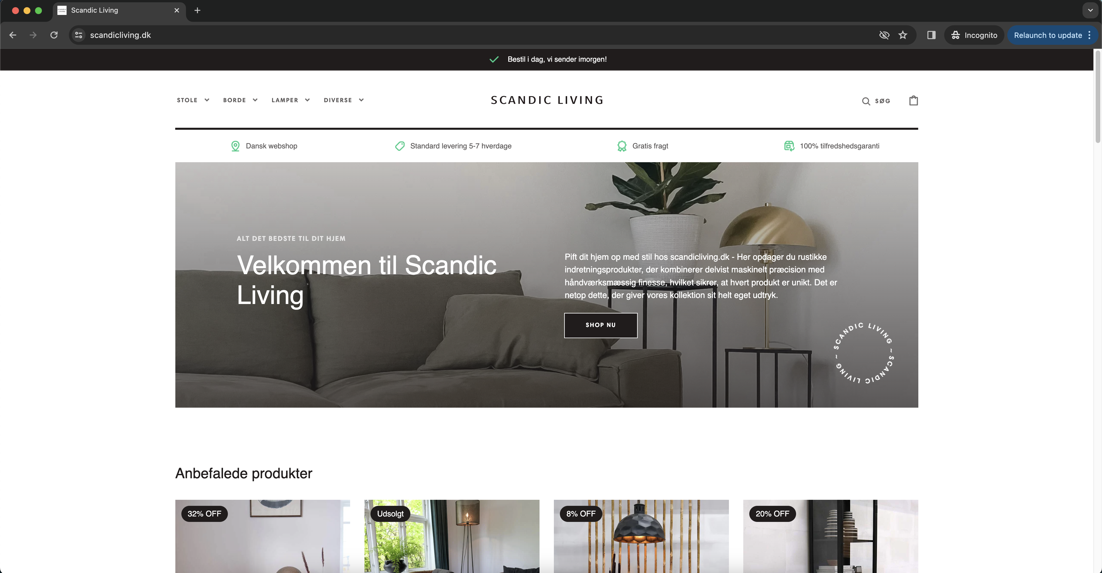 Spritny Shopify webshop (møbler, boliginteriør, lamper)