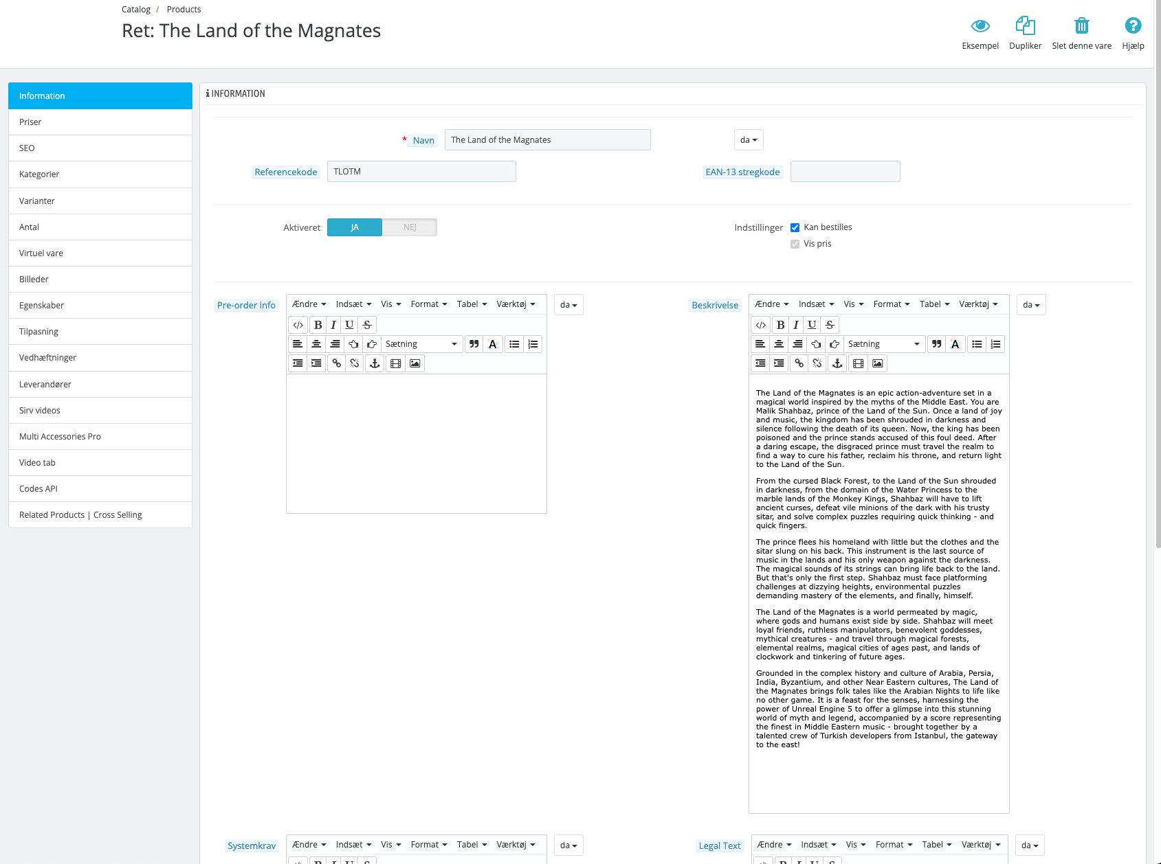 - Shoppen er udviklet i ThirtyBees 1.5, en moderne variant af Prestashop 1.6.
