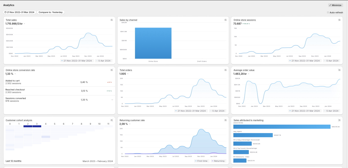 Konverteringsrate Sverige november 2022 - marts 2024 = 1,32%