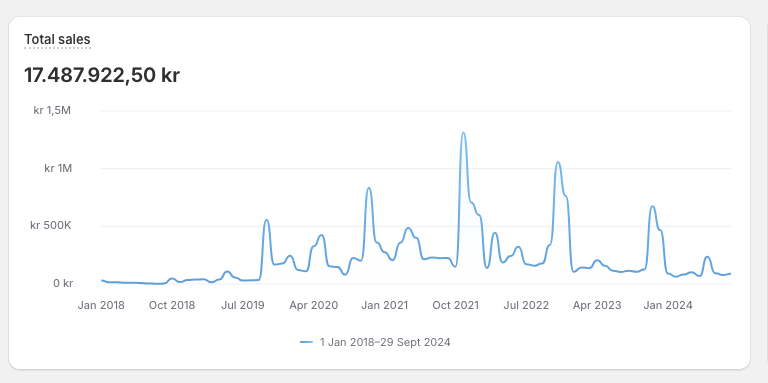 Shoppen har i alt omsat for 21,5 ex. moms millon på Shopify og B2B ordre.