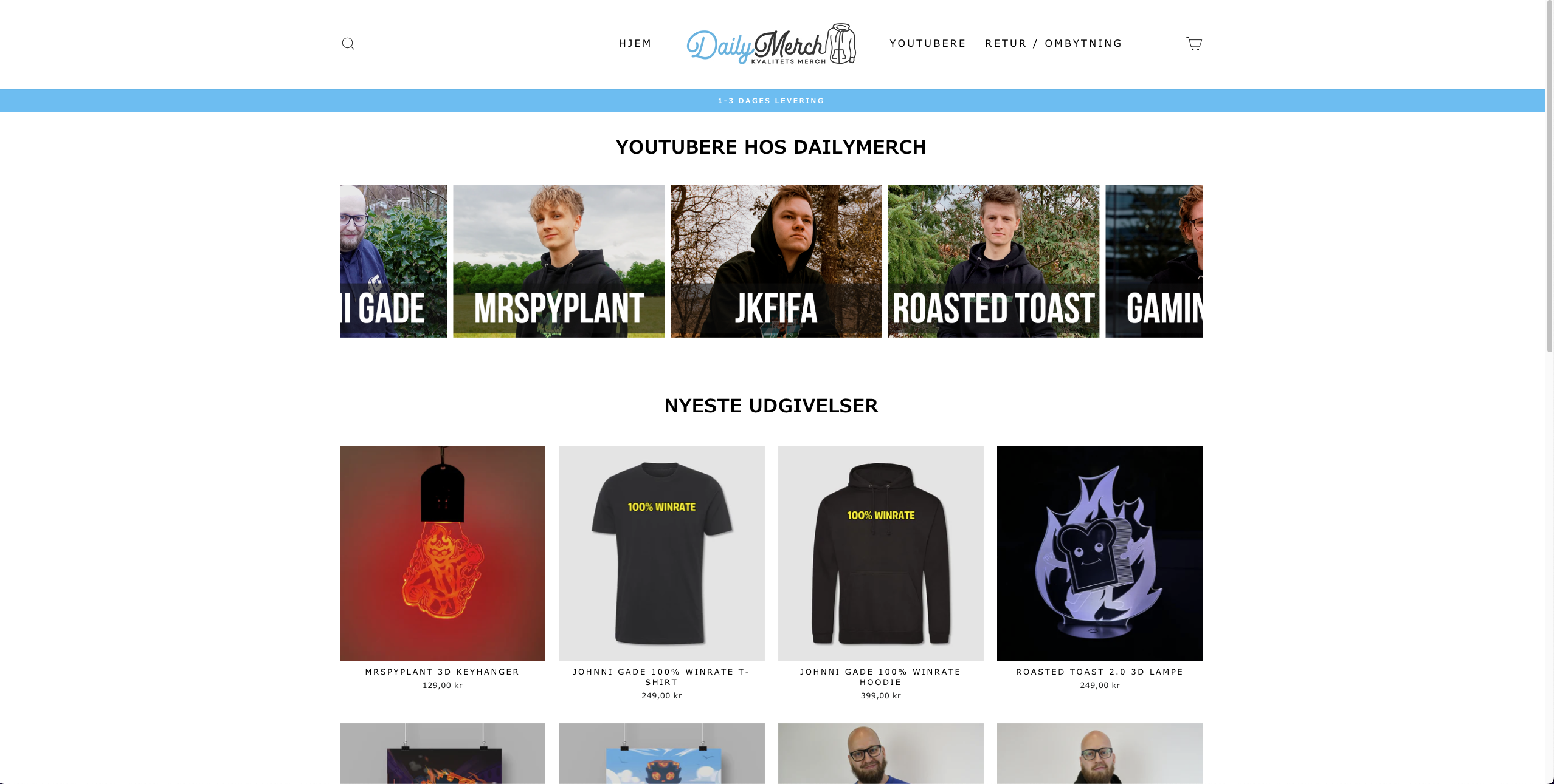 • Tøj: Hættetrøjer, T-shirts, caps og andet beklædning med unikke designs fra populære influencere.