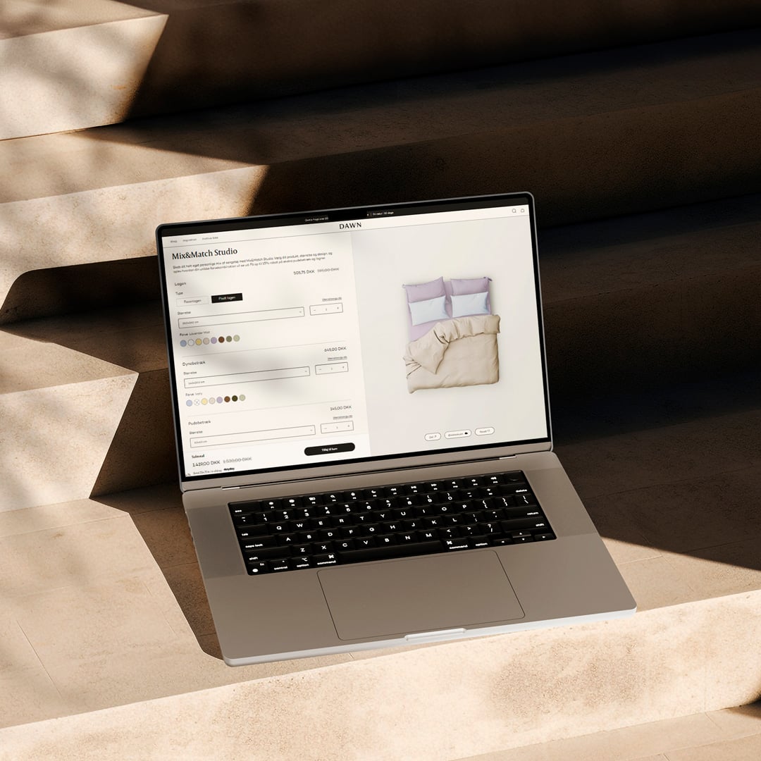 For at skabe en unik købsoplevelse, har vi investeret i udvikling af vores “Mix&Match Studio”, som er en online visualisering på webshoppen, hvor kunderne kan sammensætte sit valg af sengetøj på tværs af af kollektioner og styles, for at skabe et unikt og personligt udtryk. Mix&Match Studio er med til at differentiere DAWN i markedet som et innovativt brand, samt inspirere kunderne og øge ordreværdien.