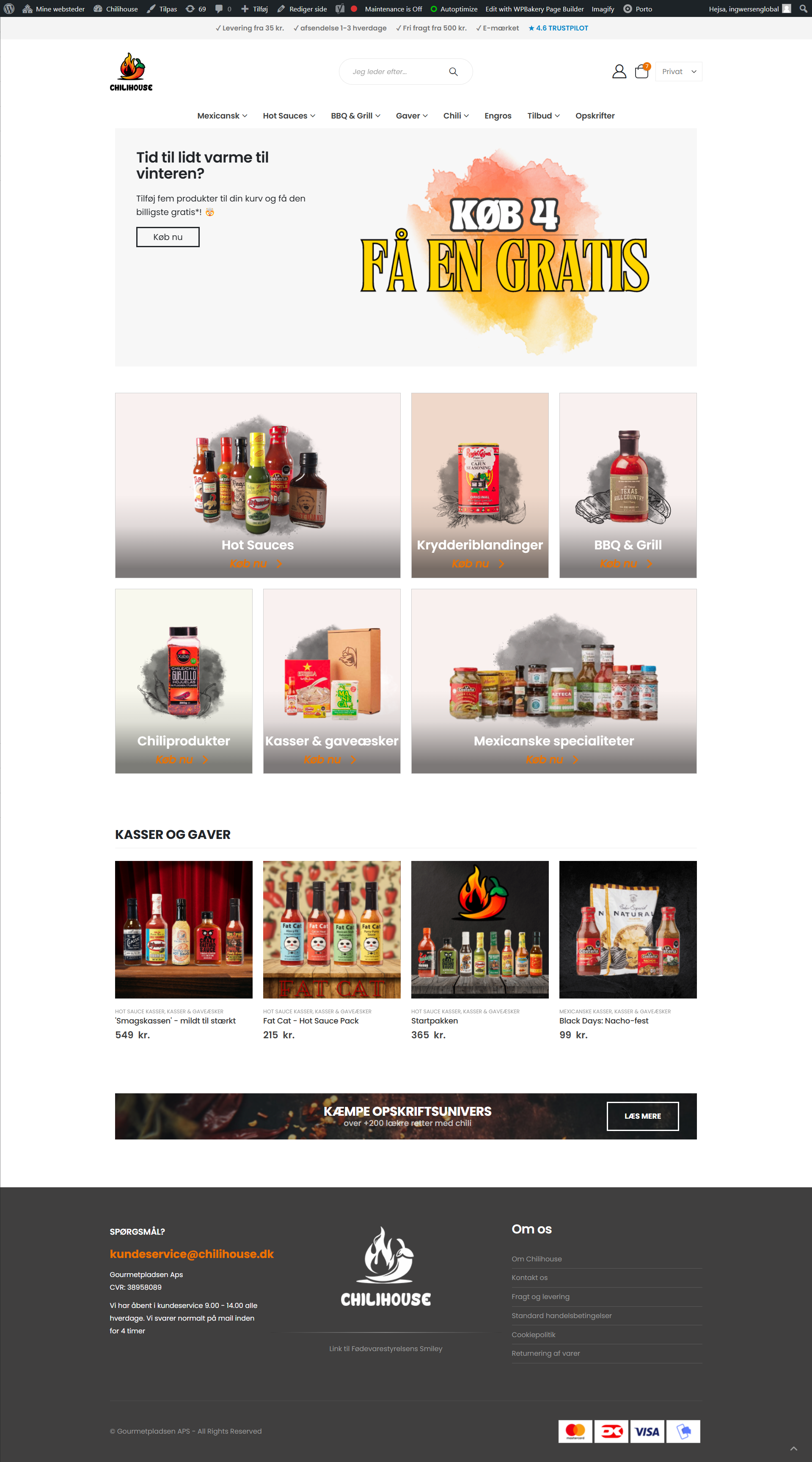 Shoppen er bygget i wordpress, og med custom tilpasninger som gør den nem at opdatere forside og laver kampagner.
