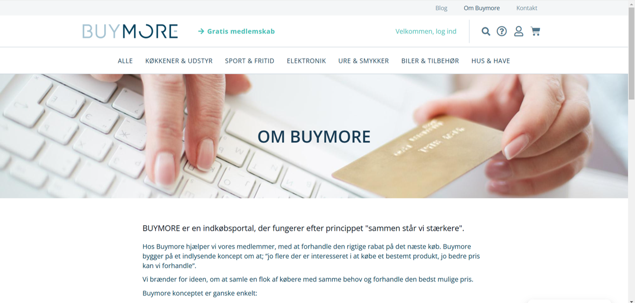 Hos Buymore.dk hjælper vi vores medlemmer, med at forhandle den rigtige rabat på det næste køb. Buymore bygger på et indlysende koncept om at; ”jo flere der er interesseret i at købe et bestemt produkt, jo bedre pris kan vi forhandle”.