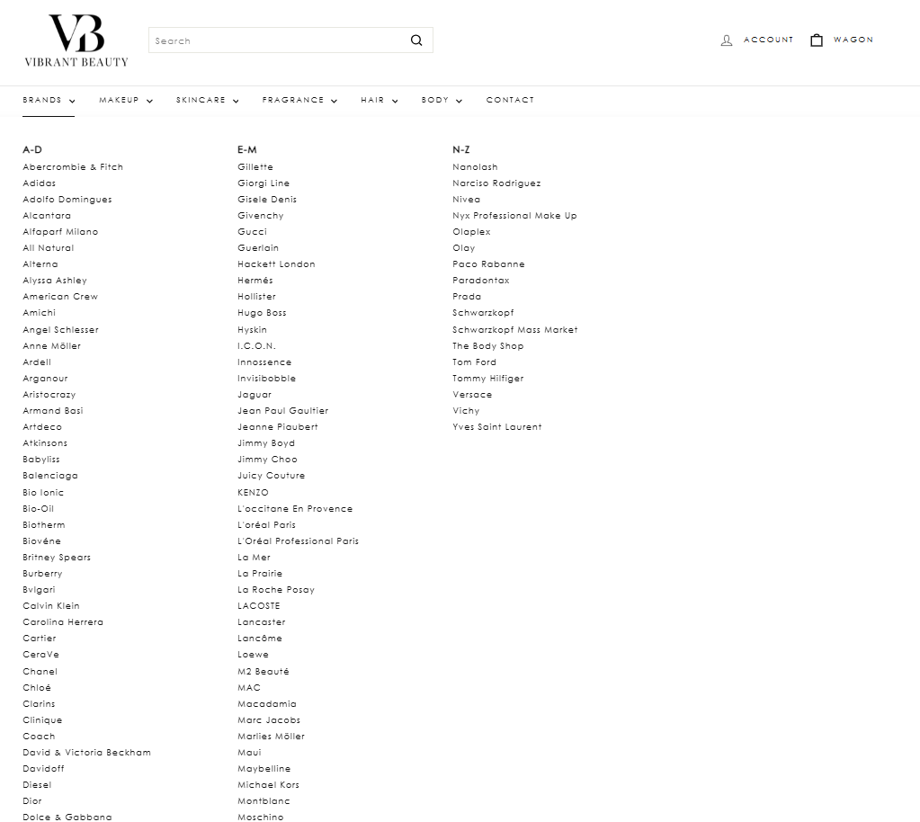 Vibrant Beauty sælger kosmetik, dufte, hudpleje og personlig pleje, med mere end 300 af de mest prestigefyldte og kendte mærker på markedet. Vi strækker os fra high-end brands som Chanel, Cartier, Prada og Hermès til velkendte dagligdags og drugstore brands, som du normalt finder i dine lokale butikker. Dette foregår til en fordelagtig købspris udbudt af leverandøren, der står for afsendelse til kunder, samt tilbyder mulighed for returnering af produkter i 14 dage.
