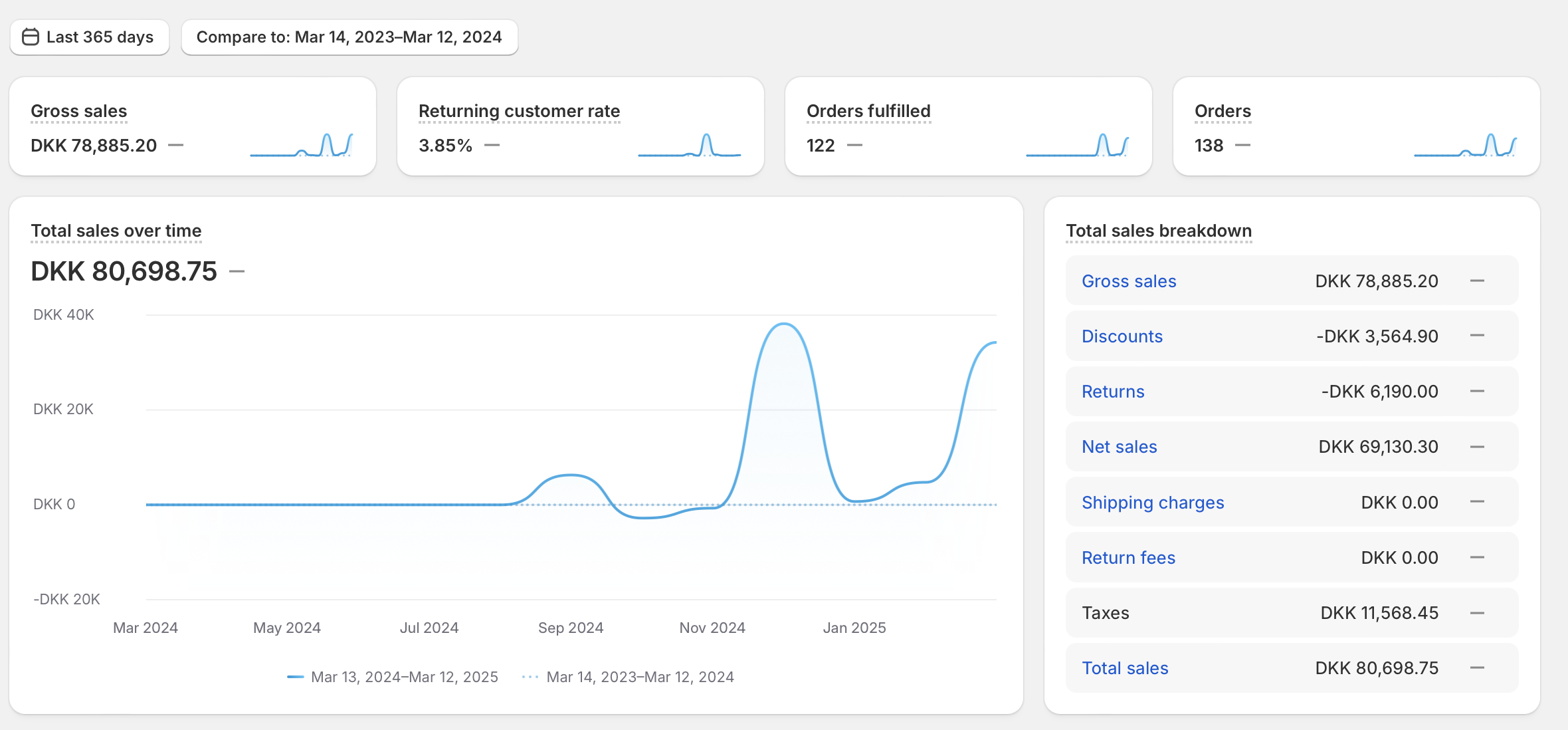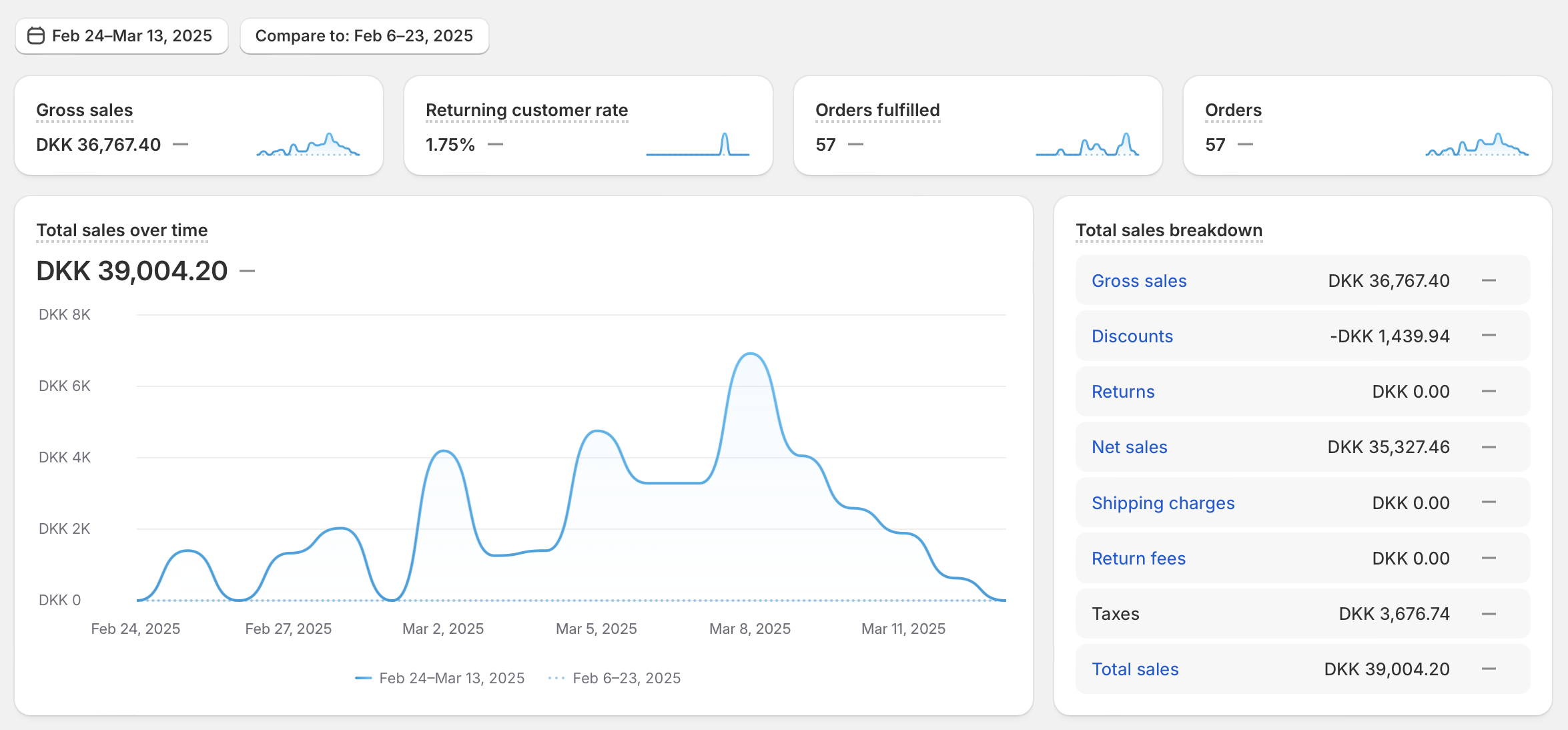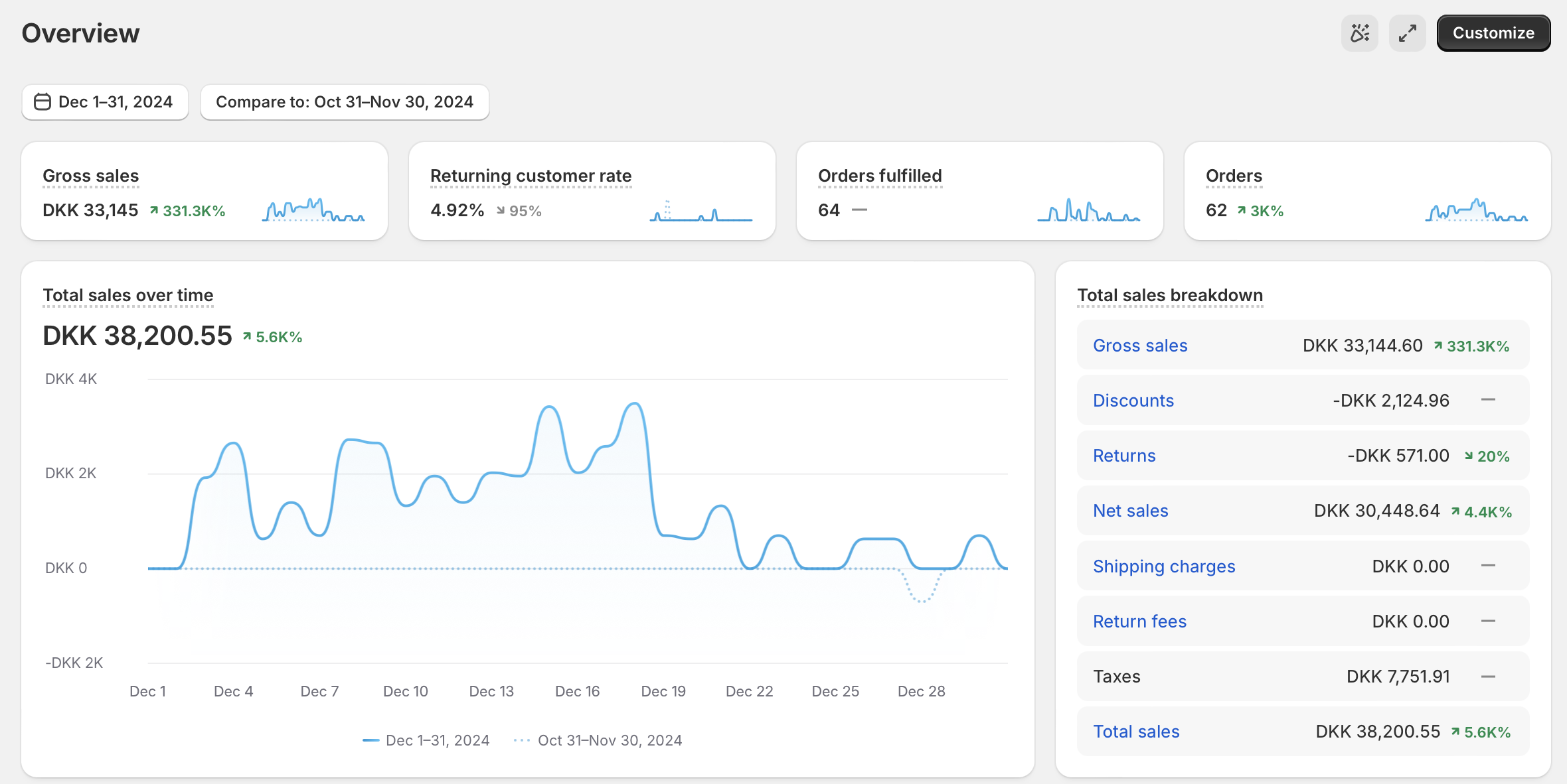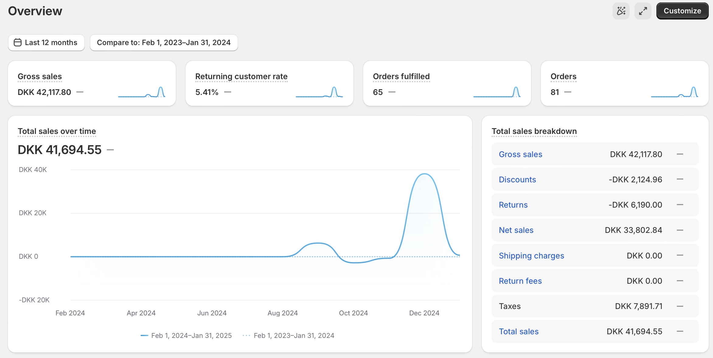 Webshoppen har omsat for 38.000 kr. i halvdelen af december, og derefter lukket ned pga. mangel af varer. For nyligt kommet fornuftig mængde varer hjem, så derfor ingen grund til at tænke på at bestille nye varer.