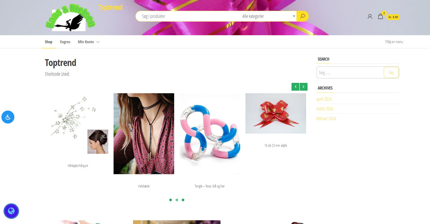 Webshop med meget stort varelager, skal sælges hurtigt, da lejemålet ophører. Der sælges hårting, krøllejern, tasker, selvsiddende BH, legetøj, neglelak, spil, t-shirt, pokersæt, gaveindbindeng med sløjfe, gaveposer, og meget andet.