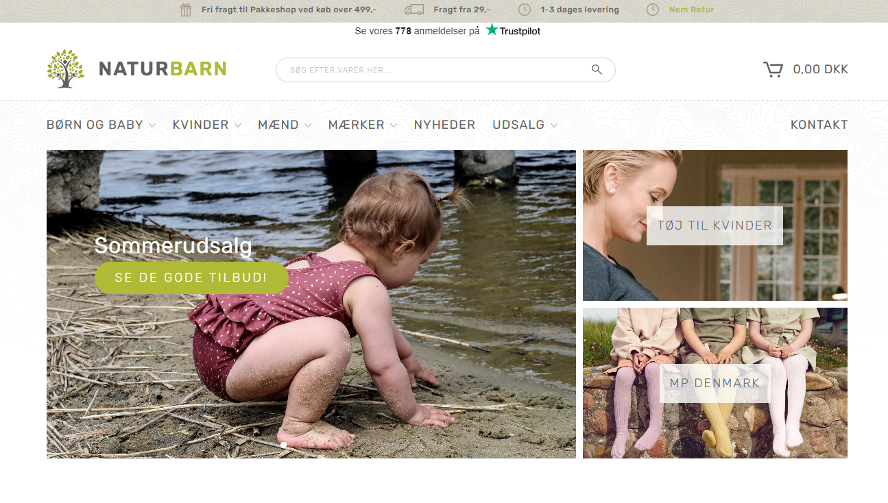 Naturbarn har fokus på bæredygtighed og naturlige materialer. Her finder du kvalitets tøj og tilbehør til mænd, kvinder og børn, fra kendte brands som Joha, Engel Natur, MP Denmark, GoBabyGo og flere.