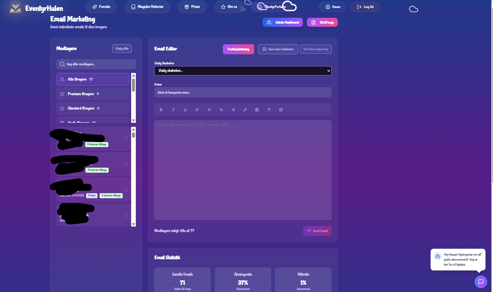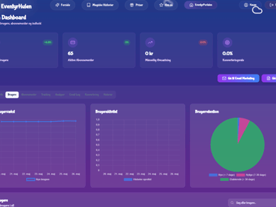 • Professionelt admin dashboard: Brugerstyring, statistikker og kampagner