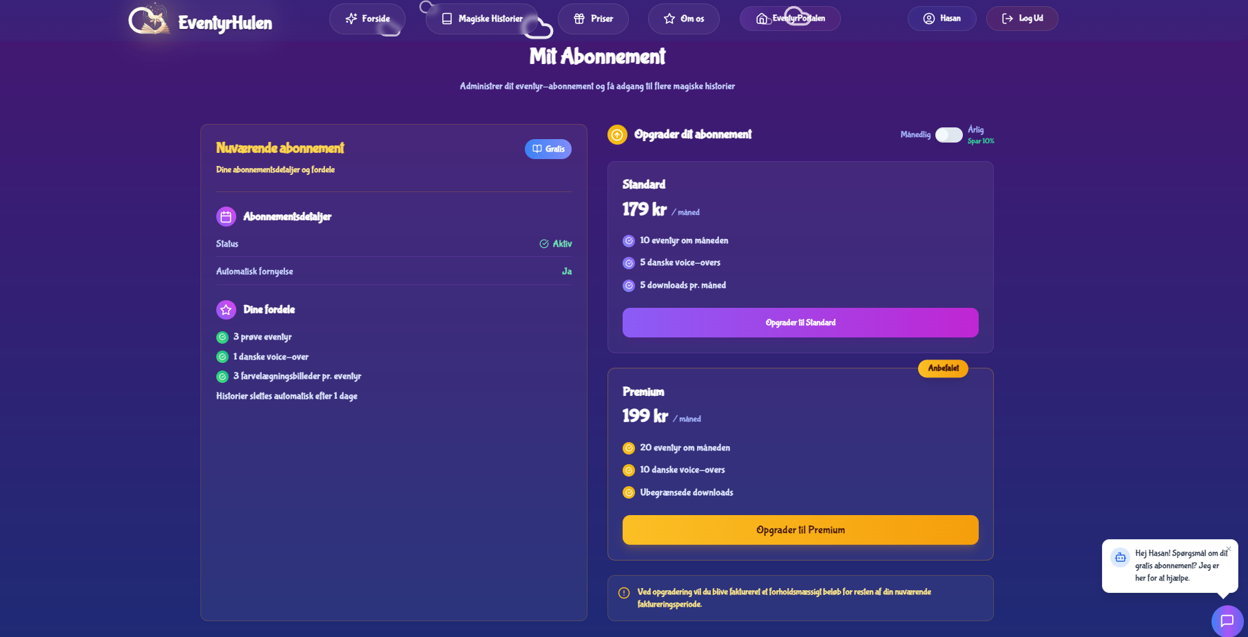 STANDARD 179 kr 10 eventyr/md, 5 voice-overs, 3 farvelægningsbilleder pr. historie, 5 downloads, 3 dages opbevaring