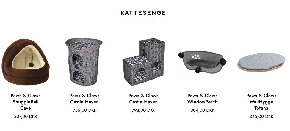 Paws & Claws tilbyder et bredt udvalg af kvalitetsudstyr til hunde og katte, opdelt i nøje udvalgte kategorier, så dine kunder altid kan finde præcis dét, som de har brug for. Alle produkter indkøbes til fordelagtige priser hos europæiske leverandører, hvilket giver en gennemsnitlig avance på 30–40 % i forhold til leverandørprisen. Bemærk, at de nuværende salgspriser i shoppen endnu ikke er opdateret så den nye ejer kan nemt tilpasse priserne, så de bliver konkurrencedygtige på markedet og matcher netop de segmenter, man ønsker at ramme. På nuværende tidspunkt er der tilføjet +100 varer fra de to leverandører som bliver benyttet. De har store sortimenter så hvis det ønskes kan man nemt tilføje flere varer.