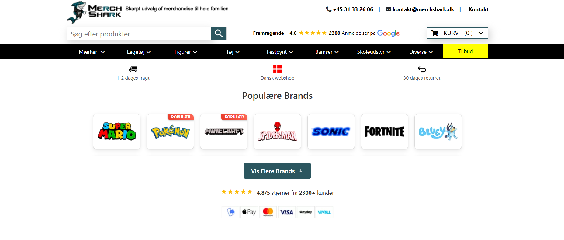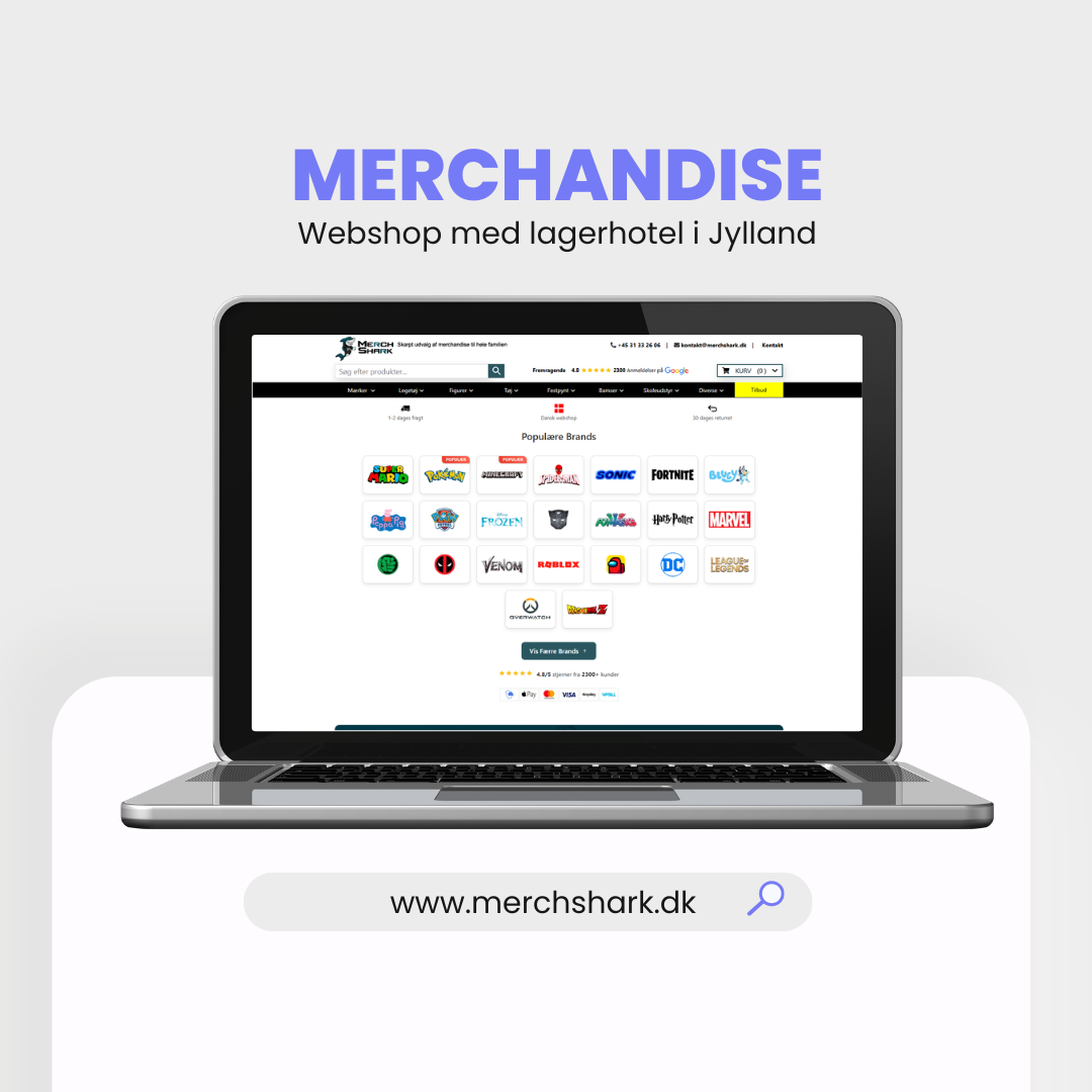 MerchShark sælger officielt merchandise fra de største og mest populære universer inden for spil, film og serier. Vi har alt fra Pokémon, Marvel og Minecraft til Harry Potter, Fortnite, Star Wars og mange flere merchandise mærker.