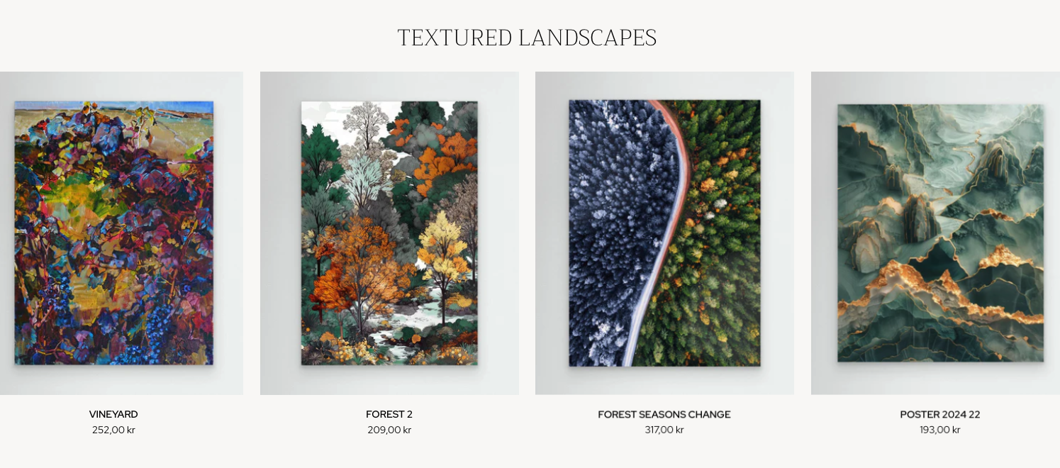 Kunderne kan købe moderne, stilrene plakater, som automatisk produceres og sendes direkte fra en europæisk leverandør – helt uden lagerbinding. Webshoppen er integreret med leverandørens platform, hvor man har adgang til over 100.000 kunstværker og nemt kan udvide sortimentet med få klik. Produktionen foregår i Europa med hurtig levering, og kunstnerne modtager automatisk royalties ved hvert salg.