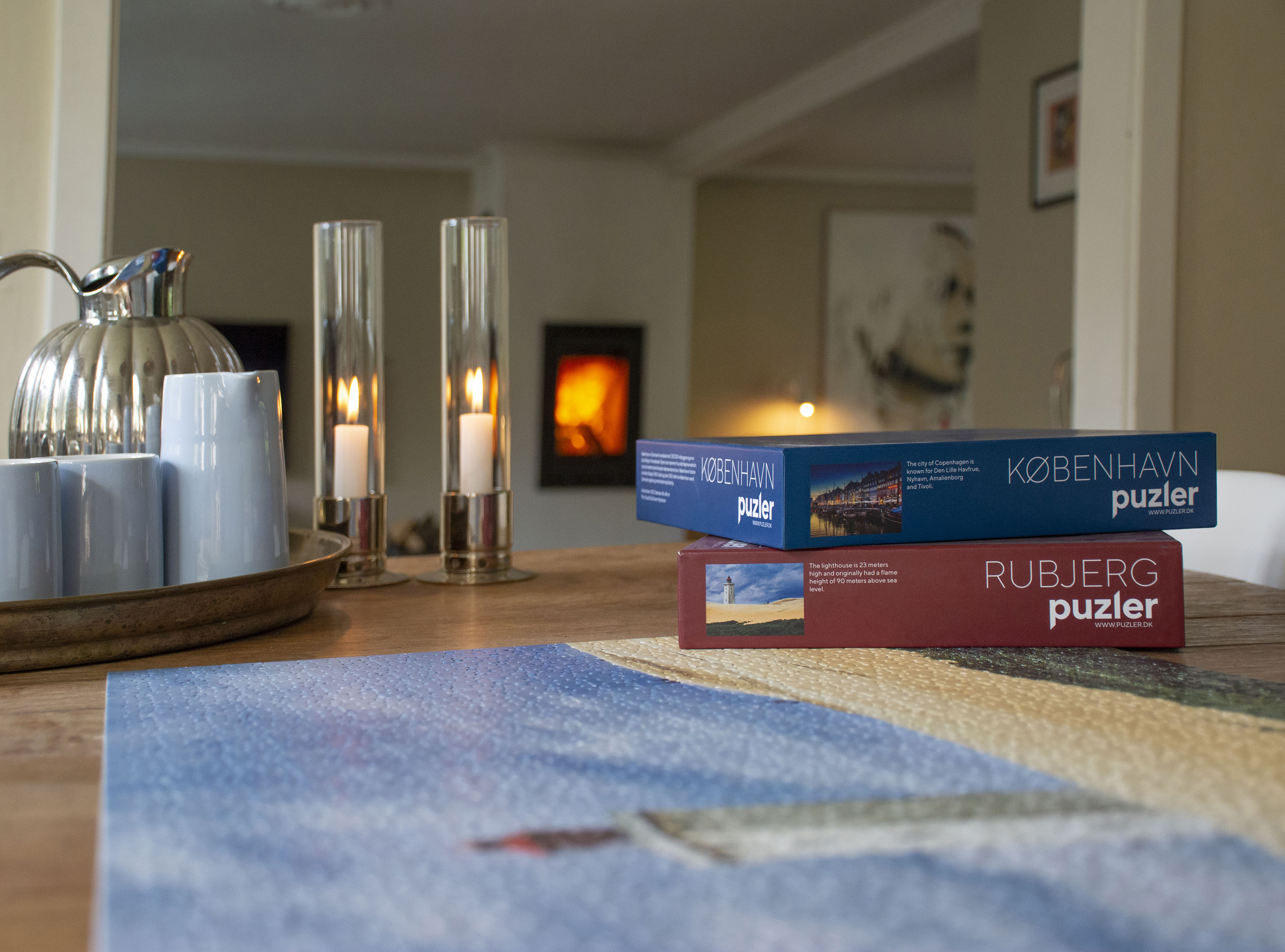 Vi sælger puslespil i vores eget mærke og design. Vores sortiment består af 10 forskellige motiver: