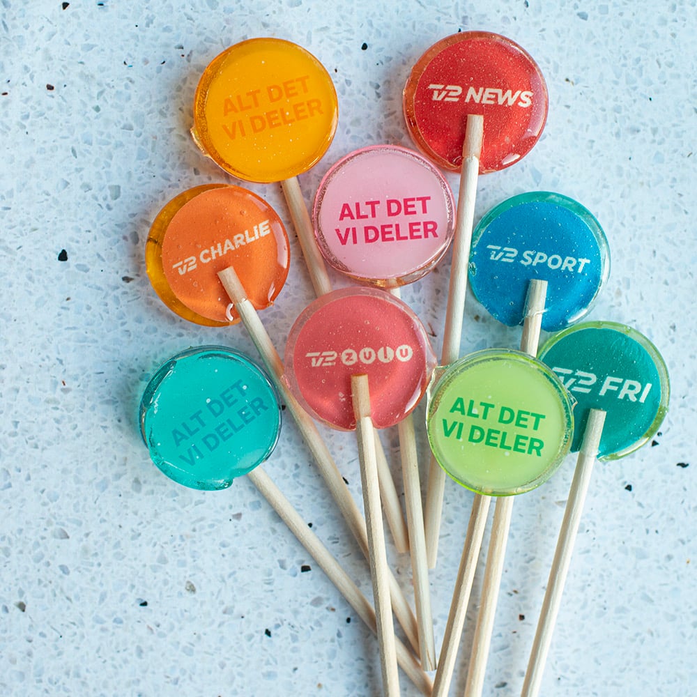 Vi har deltaget på mange messer og er også blevet et kendt brand blandt leverandører, som ofte bruger slikkepindene som blikfang på disken, i gavekurve eller får lavet noget personligt der matcher til deres eget udvalg.