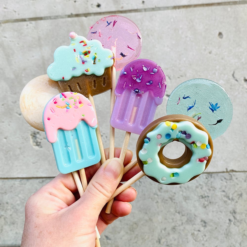 Fra dag ét har Sugar Pilots leveret håndlavede slikkepinde til udvalgte forhandlere. Nogle køber fra vores faste produktudvalg, mens andre får udviklet helt unikke varianter – i nogle tilfælde endda med egne specialfremstillede støbeforme.