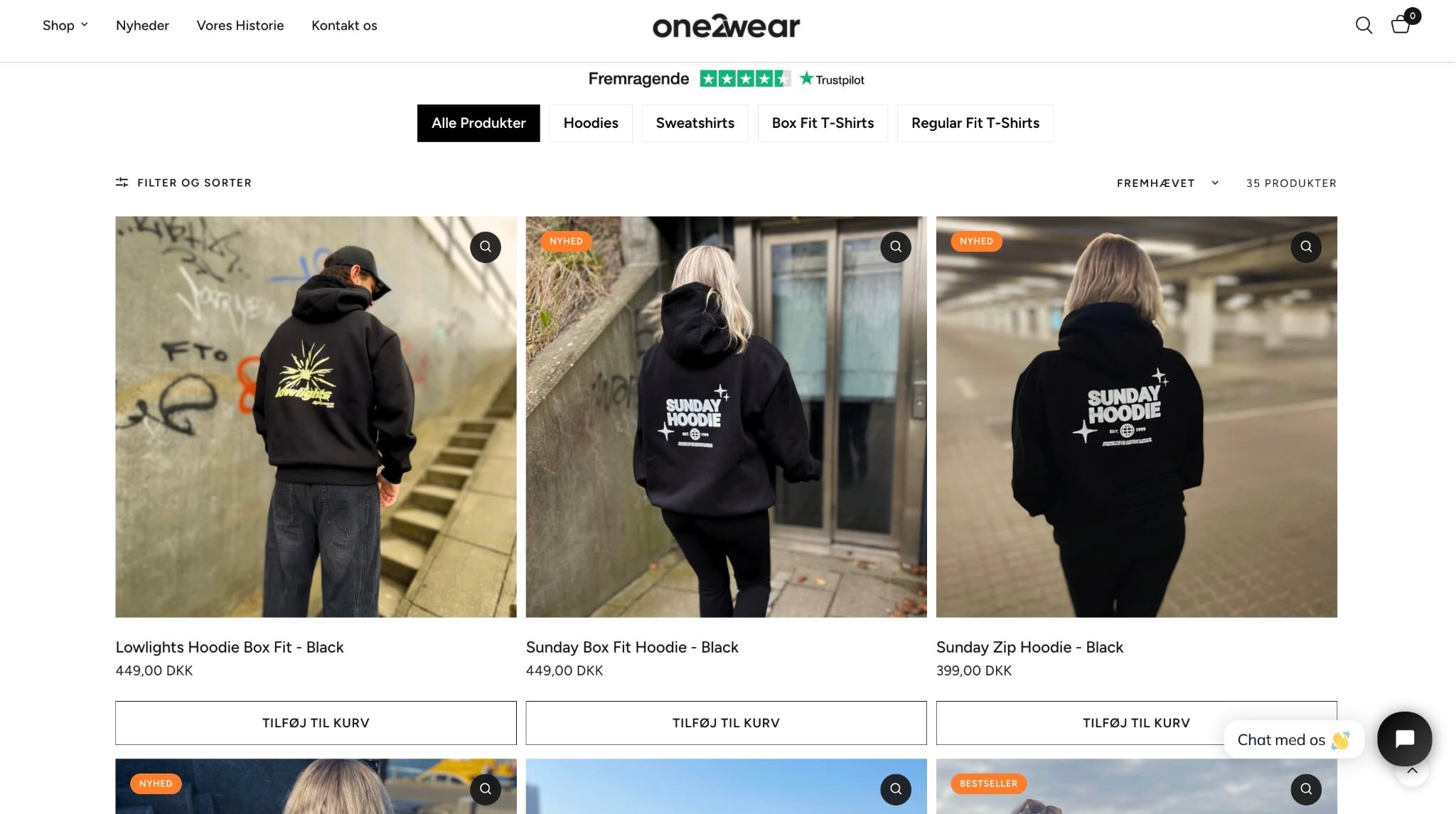 One2wear.dk tilbyder moderne unisex streetwear i høj kvalitet – blandt andet box fit t-shirts, hoodies og sweatshirts i 100% økologisk bomuld. Alle produkter trykkes via print-on-demand i Danmark, hvilket sikrer fleksibel drift uden lagerbinding. Kunderne får adgang til bæredygtigt, tidsløst og inkluderende tøj i størrelser op til 3XL, med fokus på kvalitet, komfort og en stærk brandidentitet.