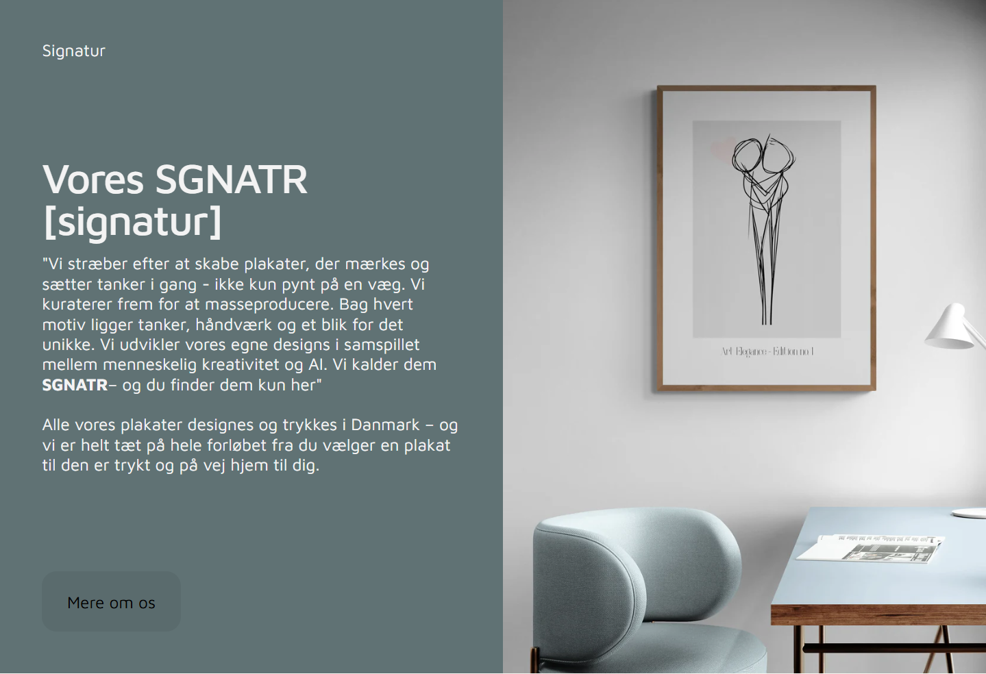 Pt. er der oprettet 100 UNIKKE plakater - SGNTR - som kun sælges i denne shop. Ved salg medfølger mine AI skabeloner mv. så du kan udvikle nye unikke plakater.