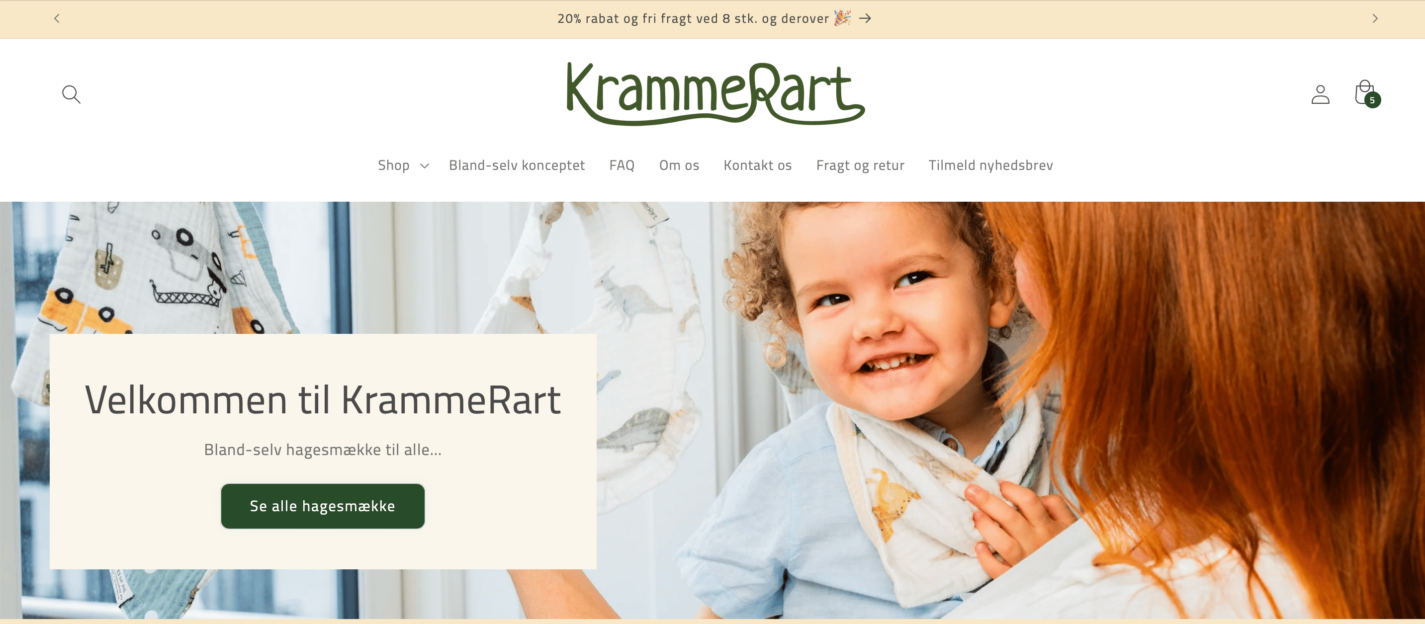 Sortimentet er bevidst relativt snævert, men meget dybt. Det betyder, at uanset hvilken type hagesmæk man søger – til savl, spisetid eller hverdagen med små børn – kan man finde den hos KrammeRart.
