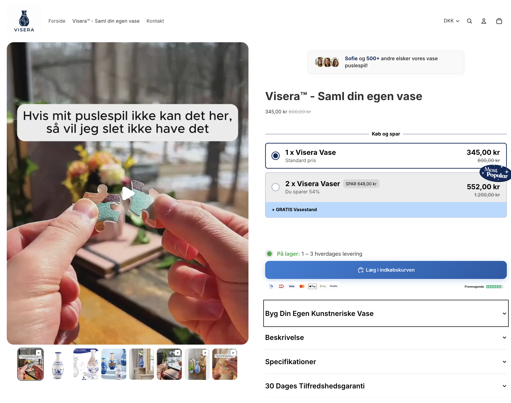 Visera.dk sælger kunstneriske 3D puslespil vaser - unikke dekorationsgenstande der kombinerer mindfulness, kreativitet og funktionalitet. Hver vase er et 160-brikker puslespil som bliver til en rigtig, vandtæt vase du kan bruge til blomster.