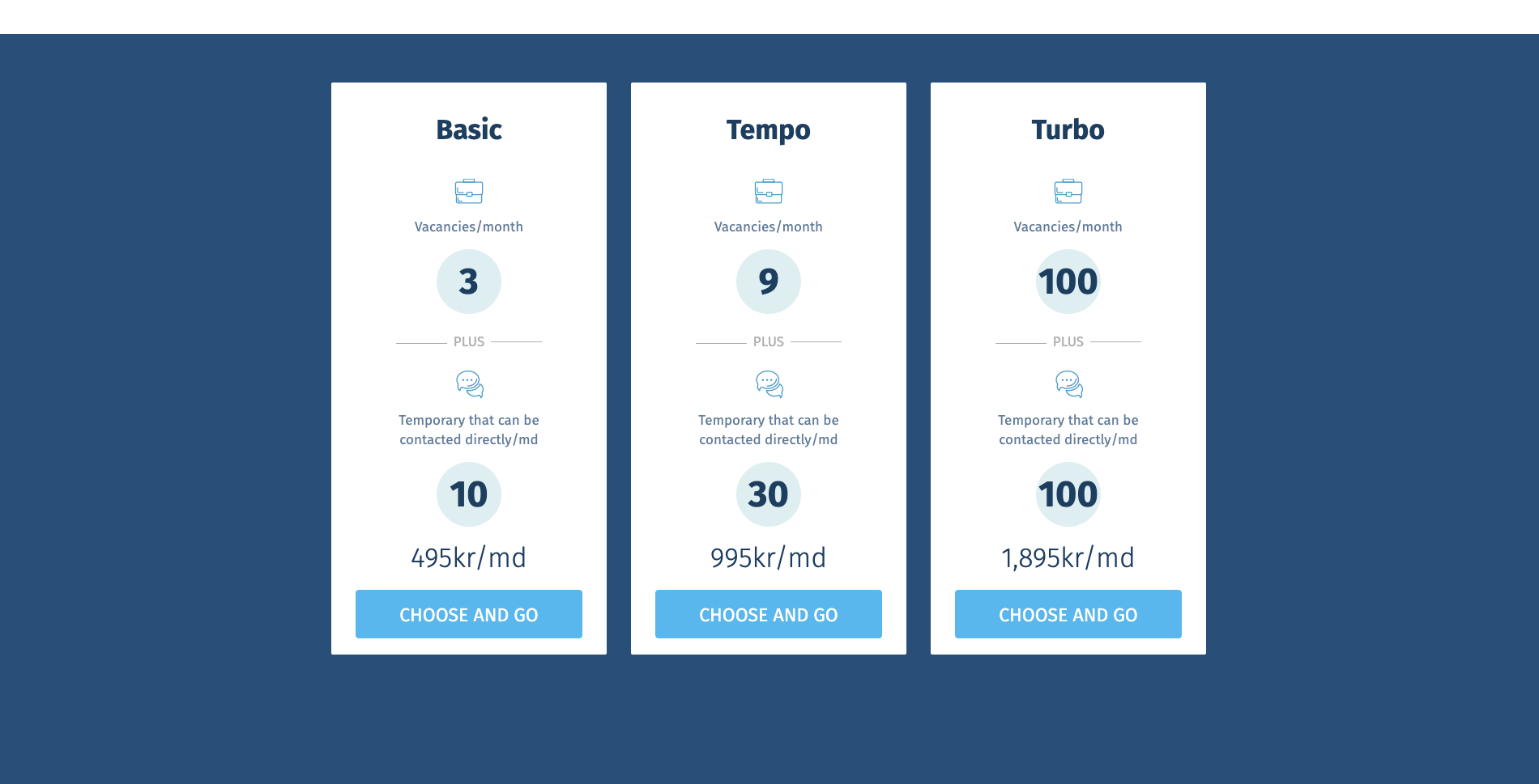 TurboTempo er et custom udviklet vikarkoncept, hvor vikarer og virksomheder mødes. Virksomhederne betaler for brug af platformen, og det er gratis for vikarer.