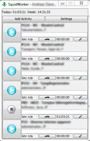 SquidWorker er en nem, enkel og hurtig brugerflade til registrering af tid og kørsel, for dem som skifter mellem mange forskellige arbejdsopgaver, i løbet af dagen.