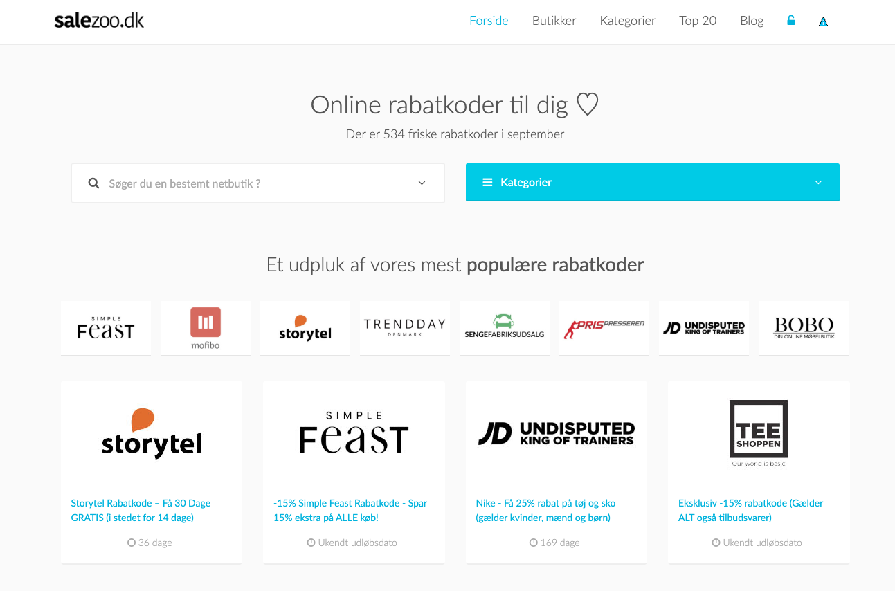 Salezoo.dk - Affiliate rabatkode side med 320+ forretninger - Overskud på 501.000 kr. før skat i 2018