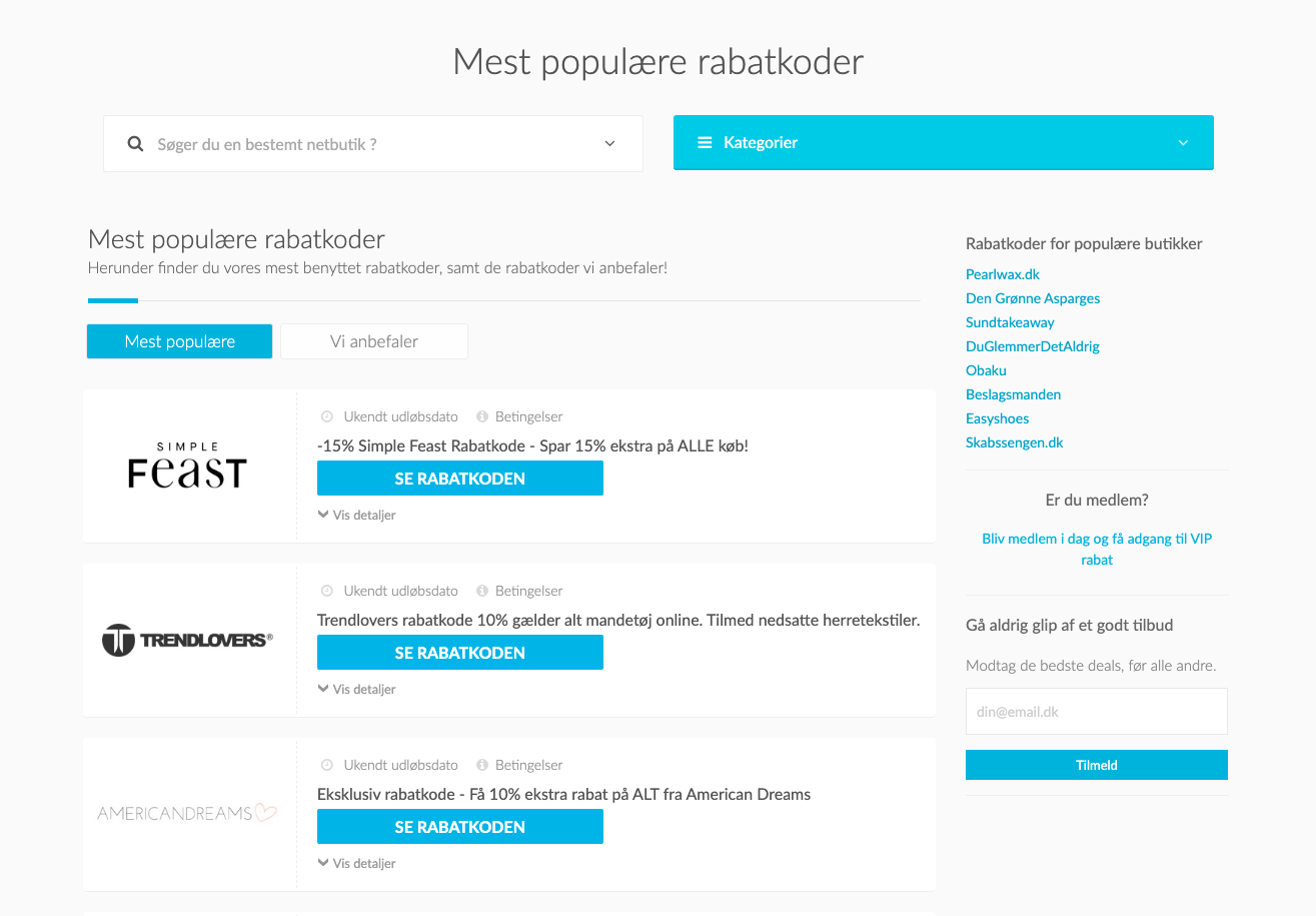 - Besøgende kan sorter rabatkoder efter interesse/kategorier