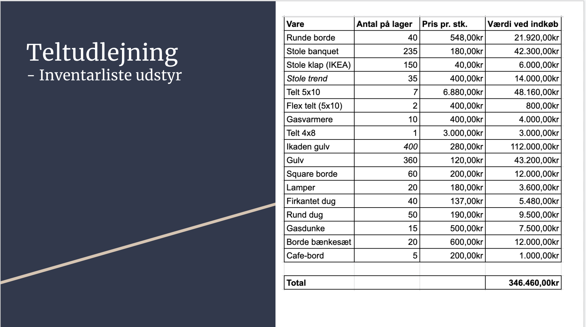 Inventar for DKK 346.460
