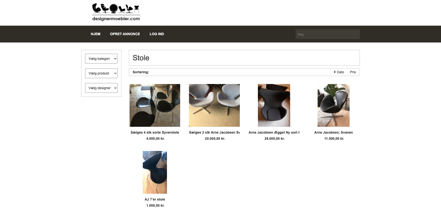 Domænet www.designermoebler.com er til salg. +600 følgere på Facebook. Koden der ligger på websiden nu er lige blevet opdateret og designet tilrettet. Koden kan bruges som platform til annoncesalg for alle typer varer. Websiden fungerer 100 %