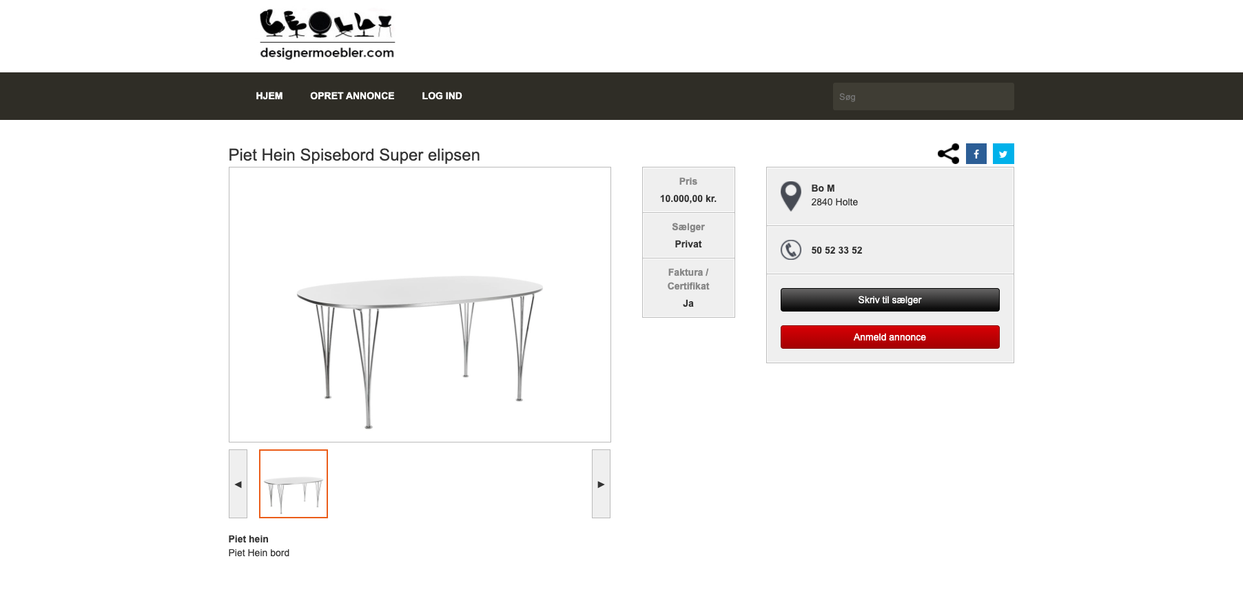 Salgsportal med salg af eksklusive brugte designermøbler og lamper