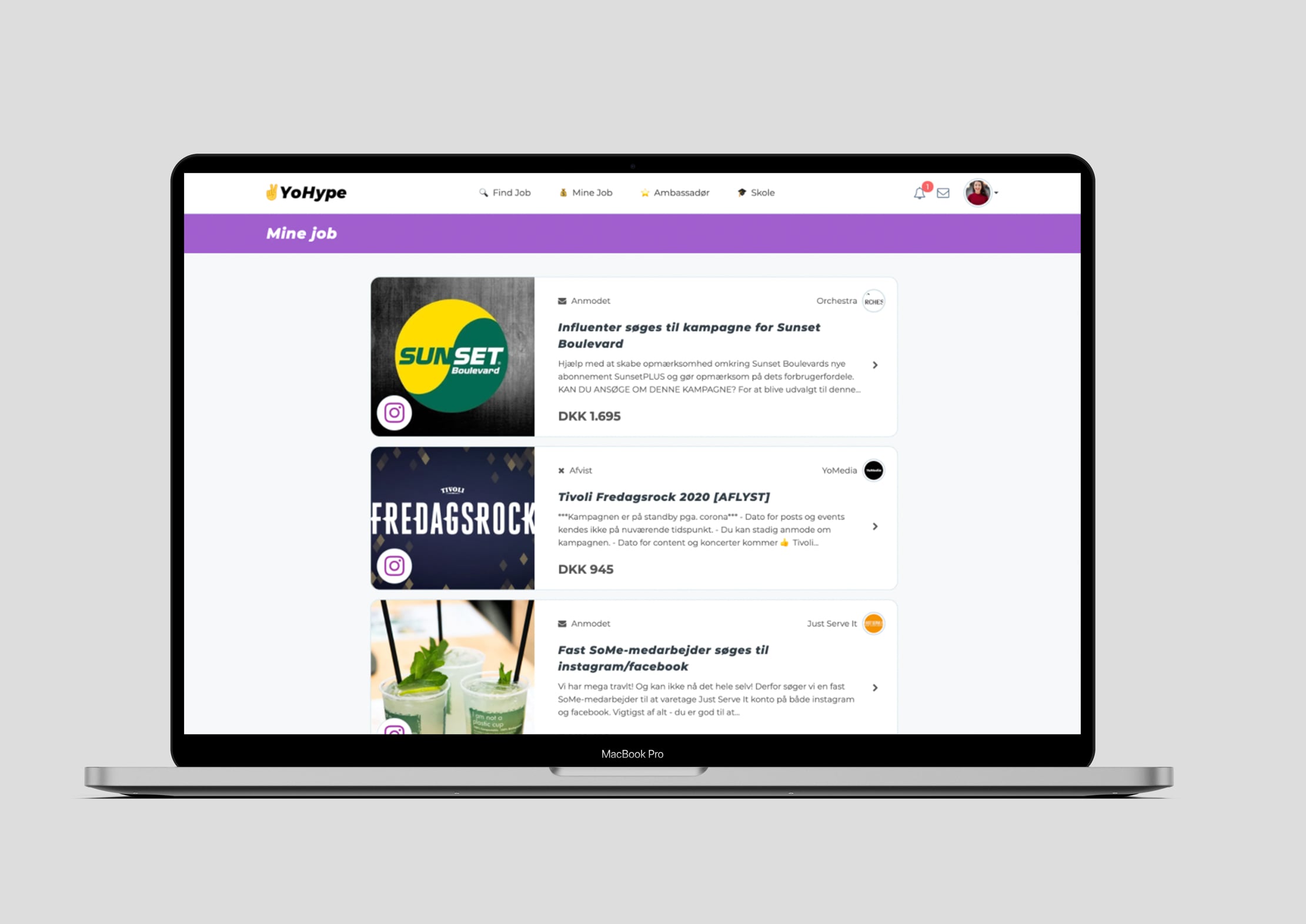 YoHype er en dansk influencer marketing-platform, som har til formål at gøre det nemt for virksomheder og influencers at mødes digitalt og indgå samarbejder. Platformen fungerer på både web, iOS og Android med et brugervenligt system, som indeholder alle de værktøjer en virksomhed skal bruge for at kunne eksekvere professionelle influent kampagner.