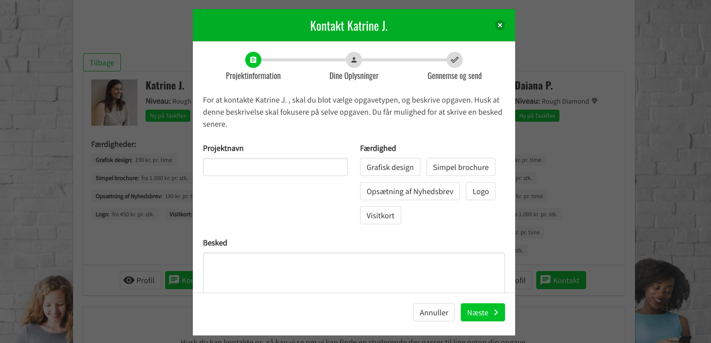 2) Kunden skriver til den valgte studerende direkte på platformen via Taskflex' unikke beskedsystem.