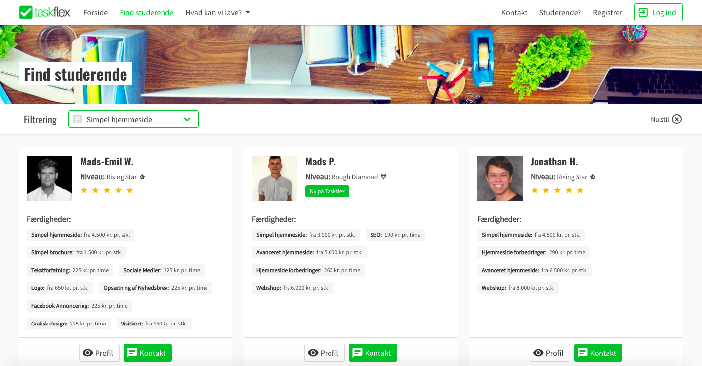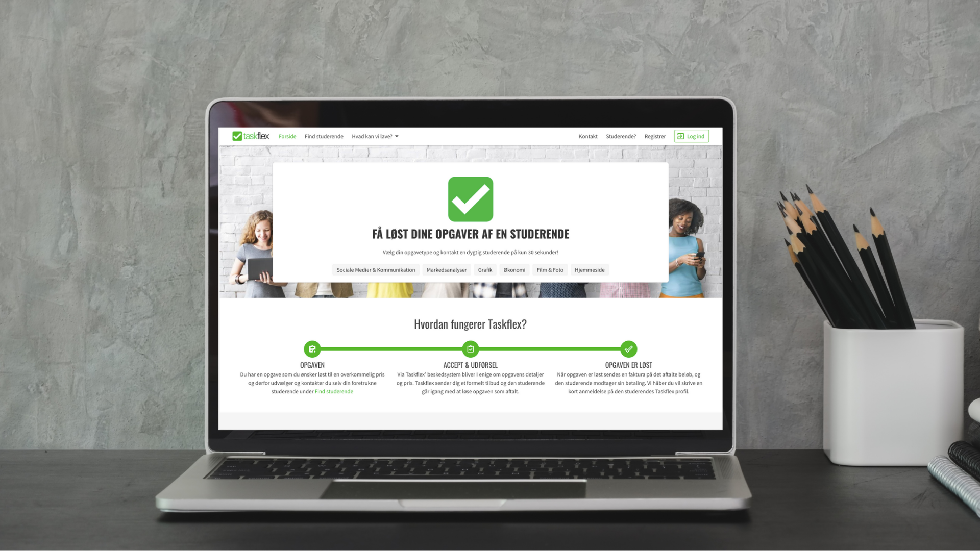 ➤ Taskflex forbinder mindre virksomheder med dygtige studerende, der kan hjælpe med opgaver som bogføring, markedsanalyse, grafisk design, hjemmeside og meget andet - til en brøkdel af almindelige priser.