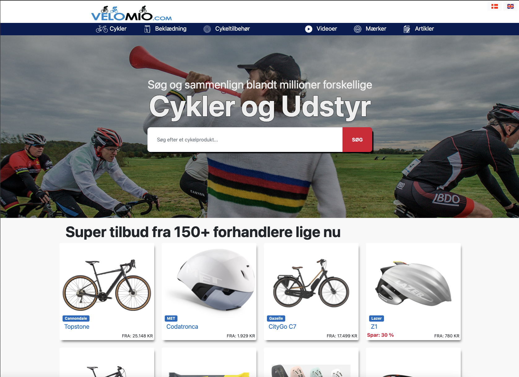 Cykelsøgemaskinen Velomio.com er forbrugernes guide til Best Buy for cykler, beklædning, komponenter og tilbehør. Baseret på indhentning og sammenligning af produkter og priser fra cykelforretninger, både webshops og fysiske butikker, skaber Velomio.com en guide i den kæmpestore jungle af cykler og relaterede produkter, der findes i et hav af forskellige kvaliteter og prisgrupper spredt ud på 1000-vis af cykelforretninger.