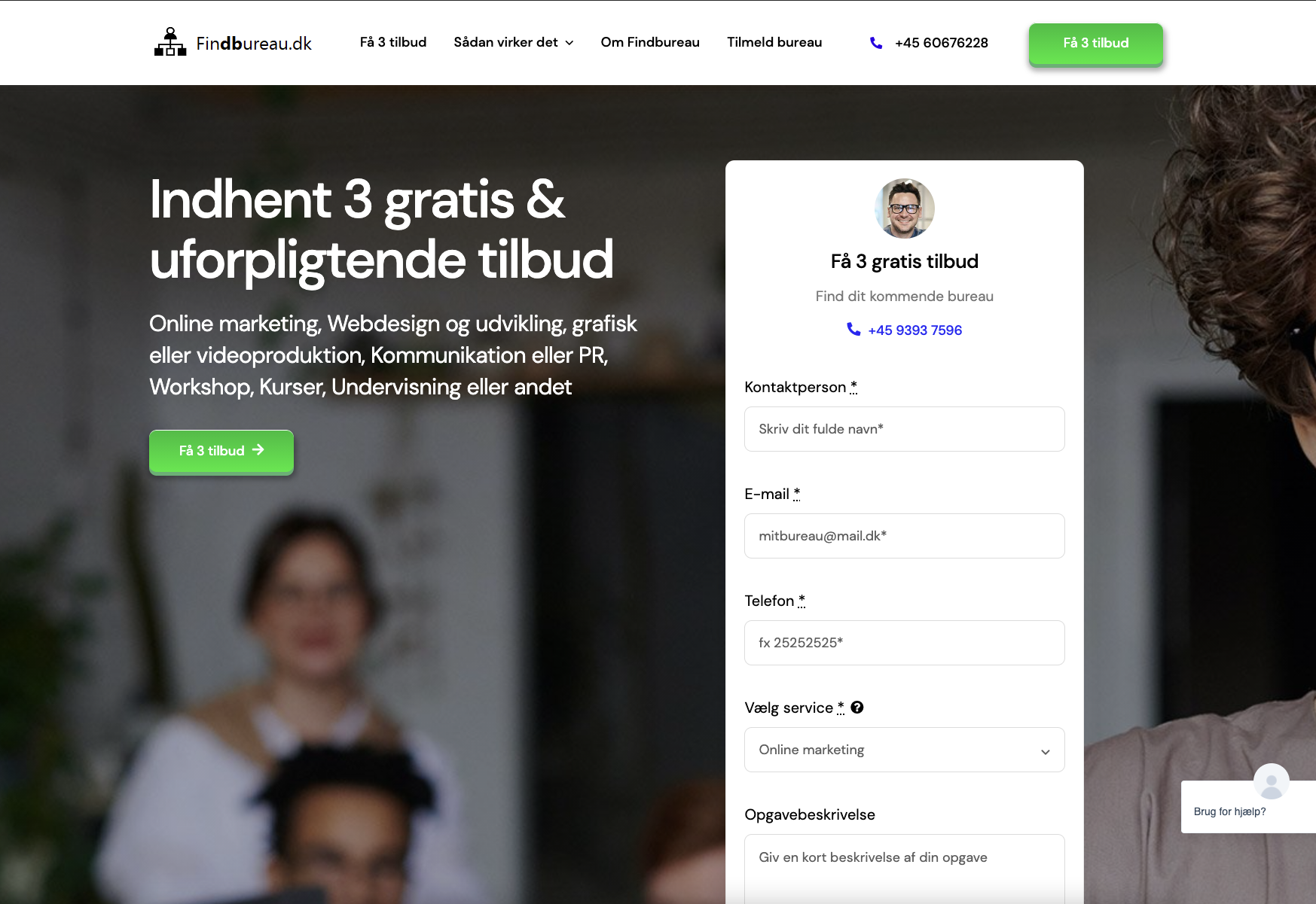 Findbureau.dk er en tilbudsportal hvor man som virksomhedsejer kan indhente 3 gratis & uforpligtende tilbud fra tilmeldte bureauer. Det kan være virksomheder som har brug for hjælp til deres online marketing, webdesign, grafisk arbejde mv.