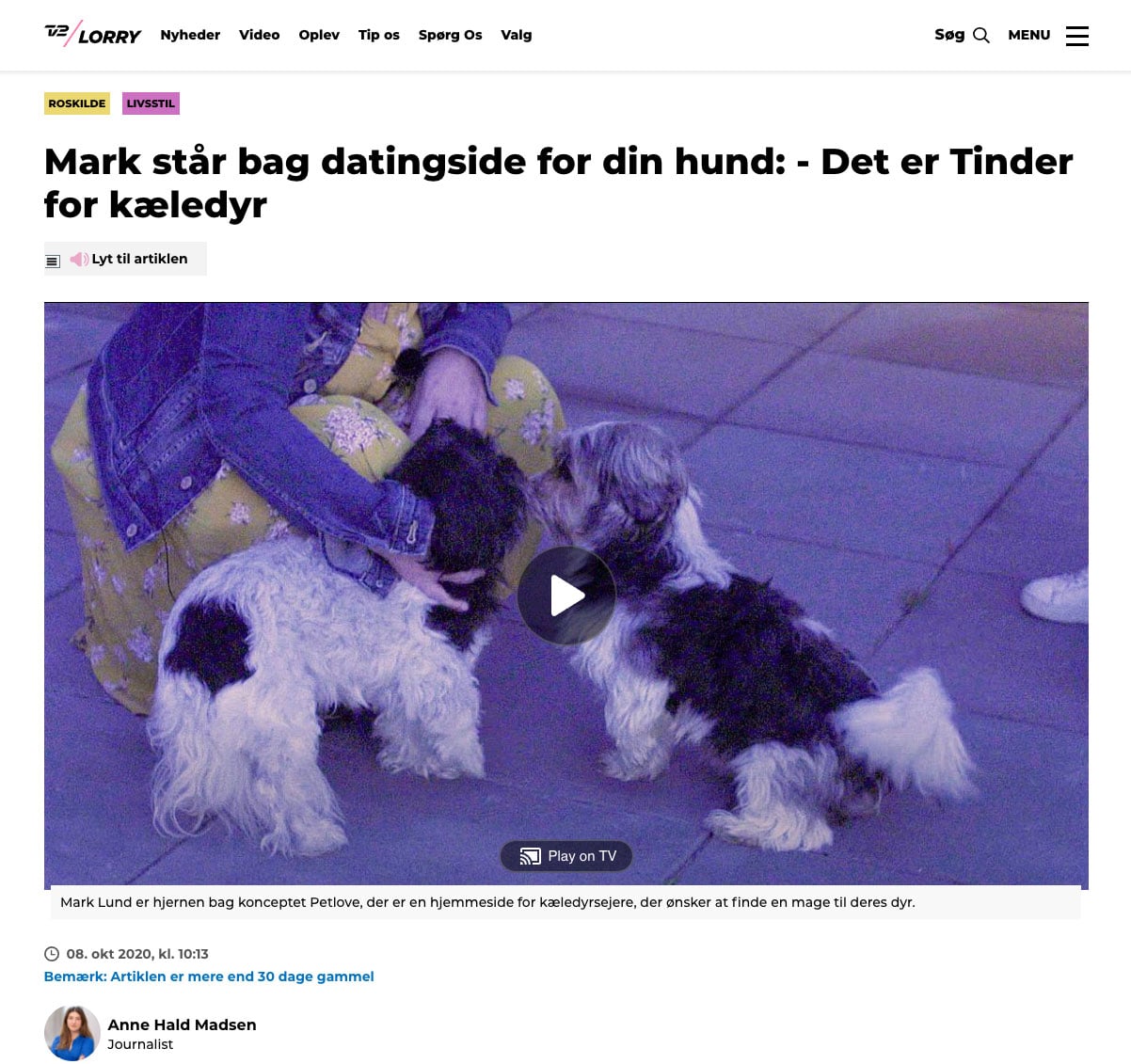 TV2 har beskrevet projektet her: https://www.tv2lorry.dk/roskilde/mark-staar-bag-datingside-din-hund-det-er-tinder-kaeledyr