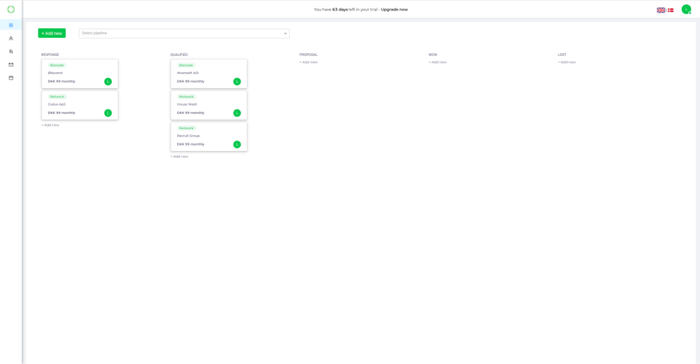 - Pipeline udviklet som Kanban hvor man kan drag n droppe deals