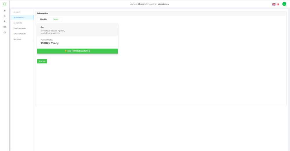 Abonnement er sat til 99kr/bruger/måned og 999kr/bruger/år.