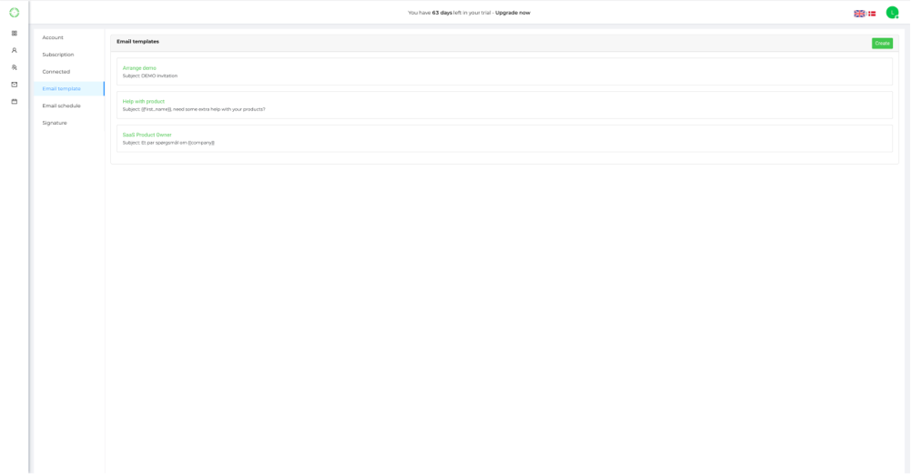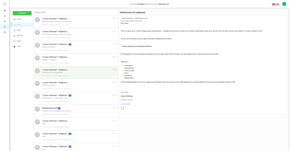 - En masse indstillinger, hvor man bl.a. kan opsætte signatur og email templates.