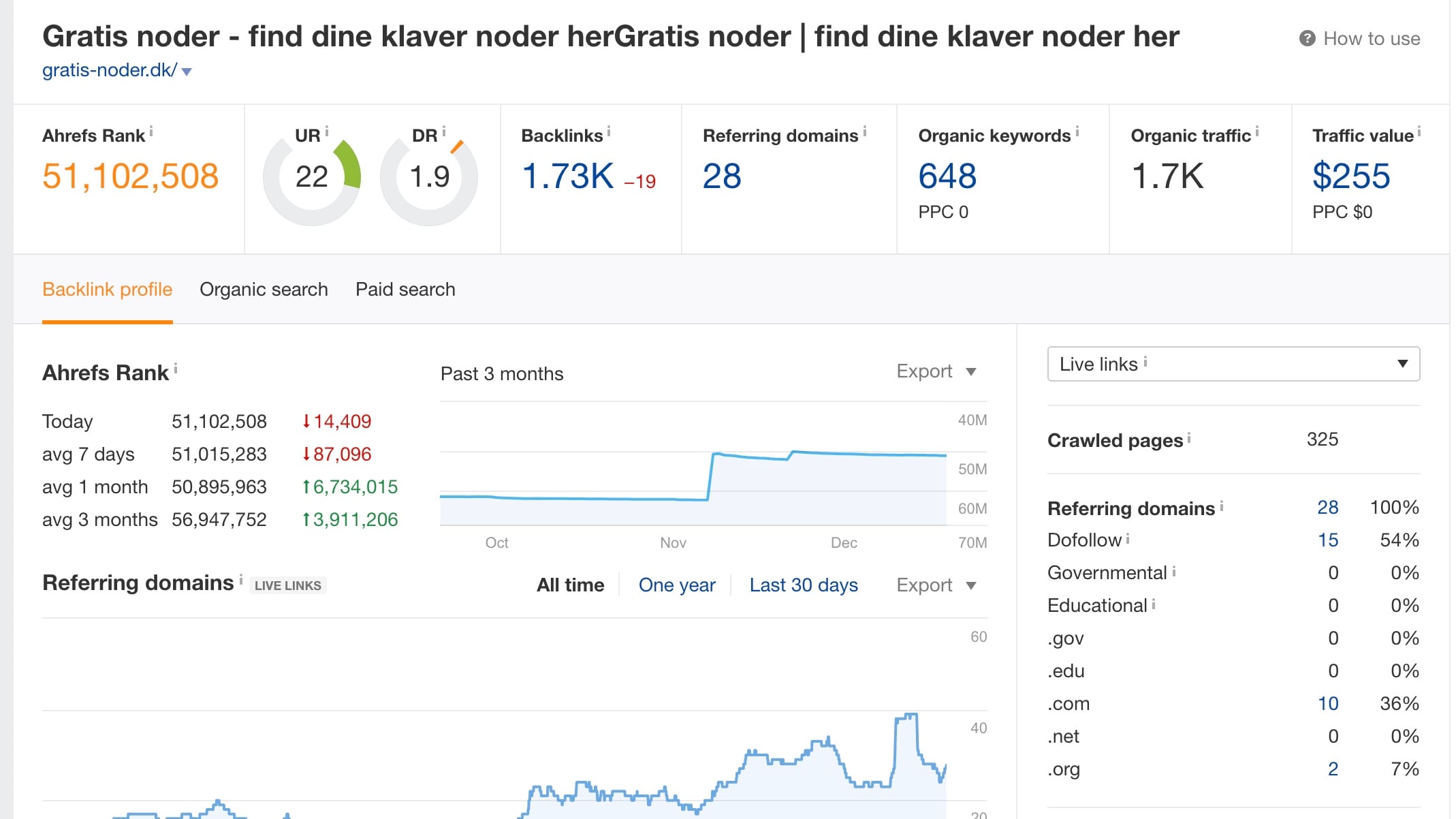 Gratis-noder.dk - Niche side m. nodedatabase og god placering i Google. - 1.700 organisk besøgende om måneden