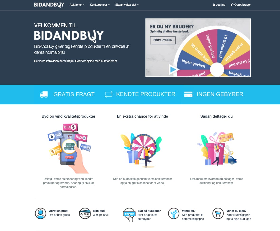 Bidandbuy.dk er en gamificeret platform, hvor brugerne kan byde på produkter som vi lægger på auktion.