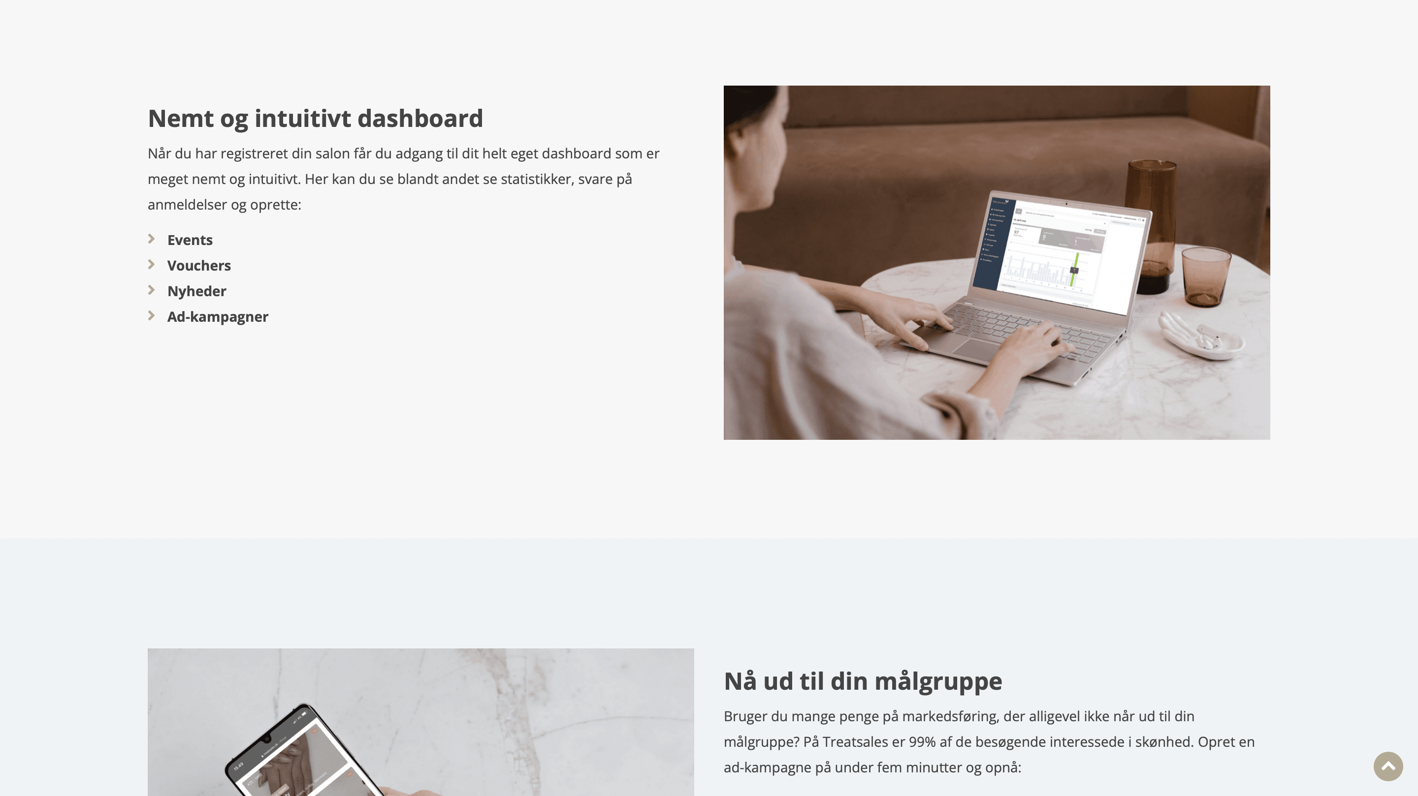 Hos Treatsales er formålet at skabe et digitalt mødested for skønhedssaloner og forbrugere. Det bliver skabt ved at samle danske saloner og klinikker inden for skønhed og velvære på én platform.