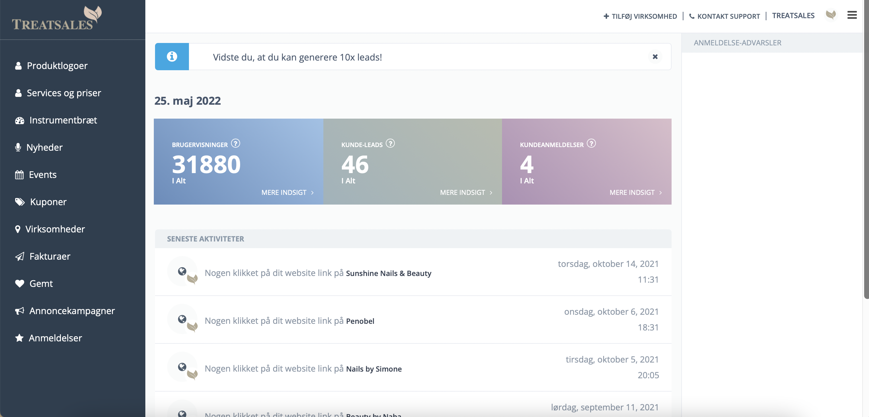 Treatsales er repræsenteret på både Facebook og Instagram. Derudover har vi et nyhedsbrev med +2.000 abonnenter.